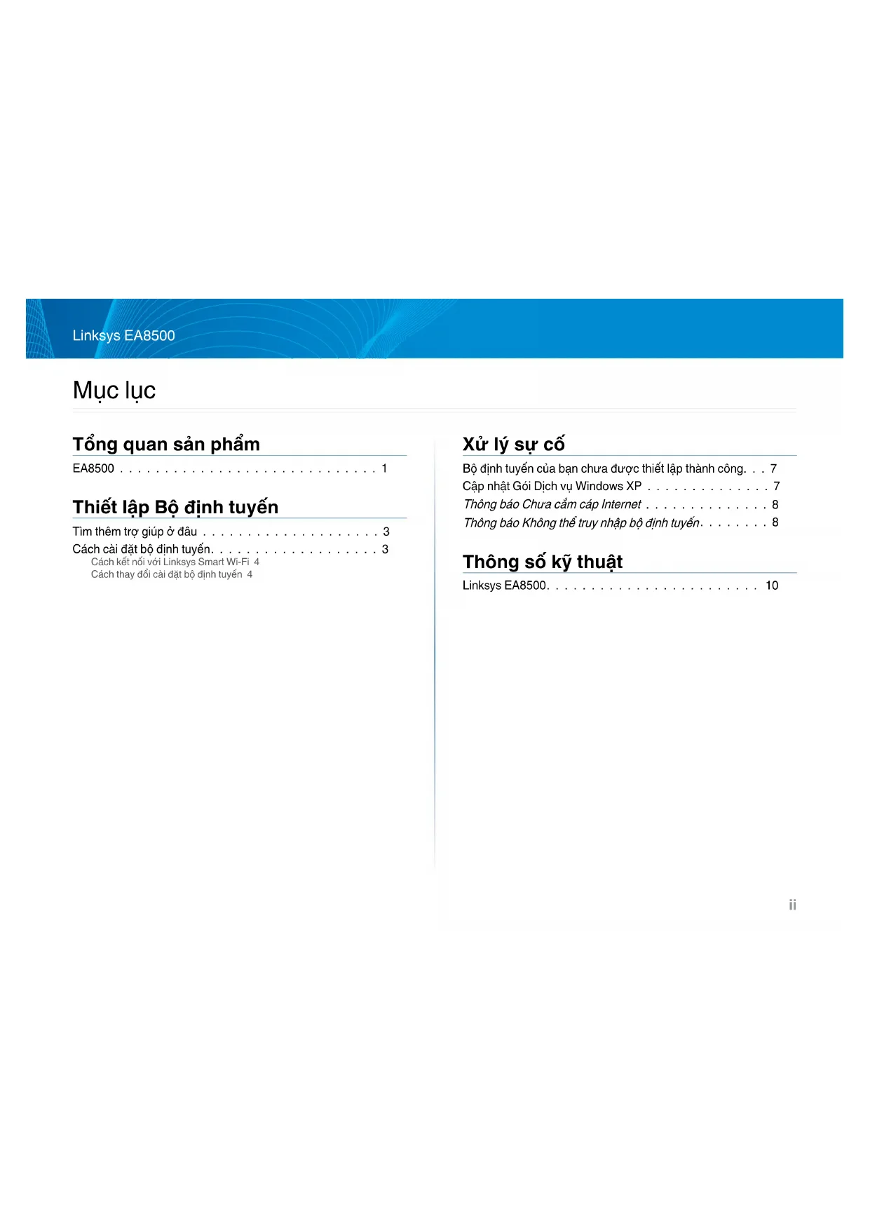- Mục lục Tổng quan sản phẩm EA8500 p. 1