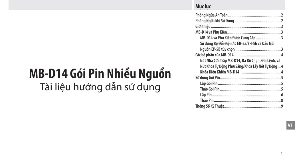 Téléchargez la notice de votre Tay cầm pin au format PDF gratuitement ! Retrouvez votre notice MB-D14 - NIKON et reprennez votre appareil électronique en main. Sur cette page sont publiés tous les documents nécessaires à l'utilisation de votre appareil MB-D14 de la marque NIKON.