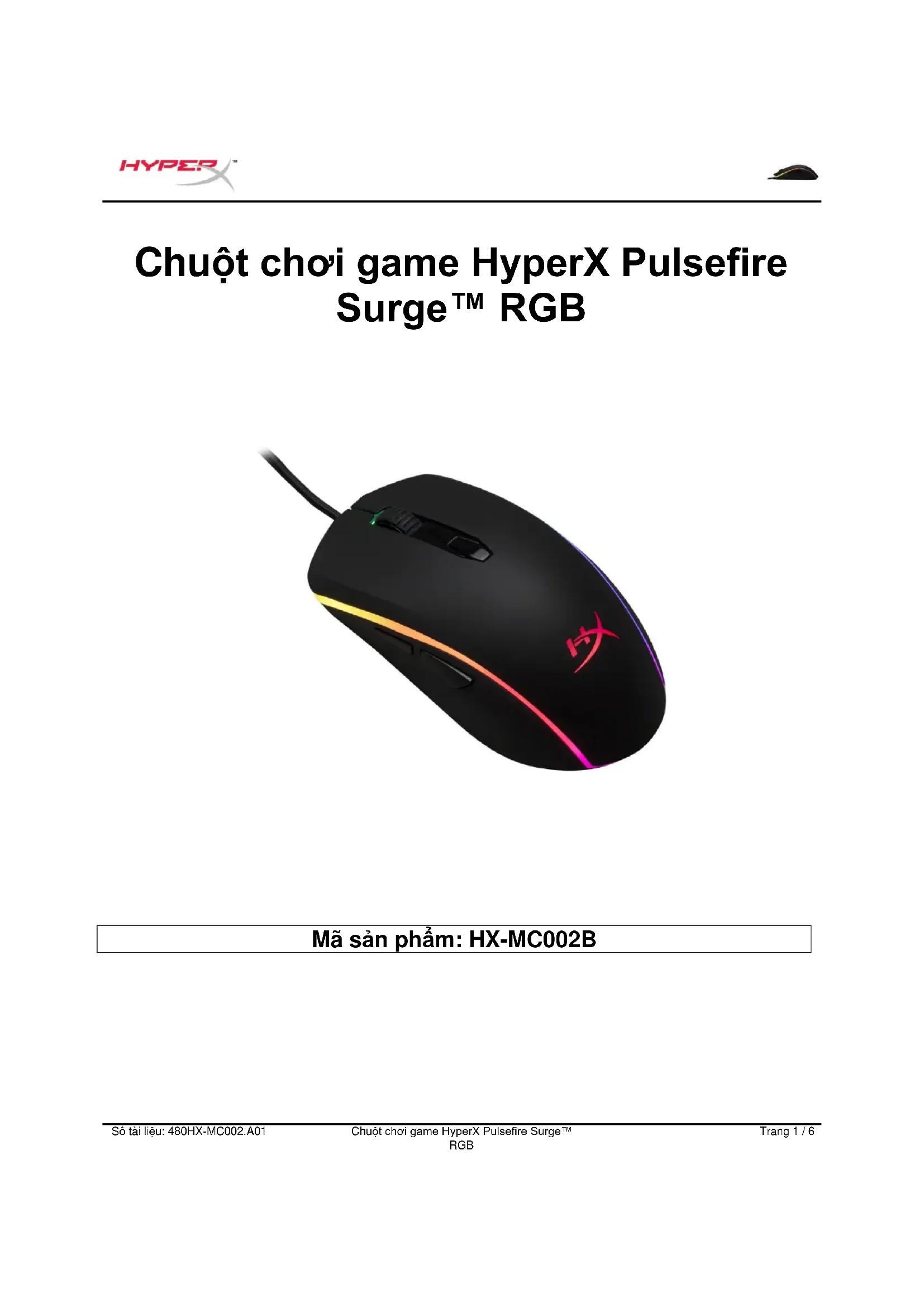 RGBSố tài liệu: 480HX-MC002.A01 Chuột chơi game HyperX Pulsefire Surge™ RGB Trang 1 / 6