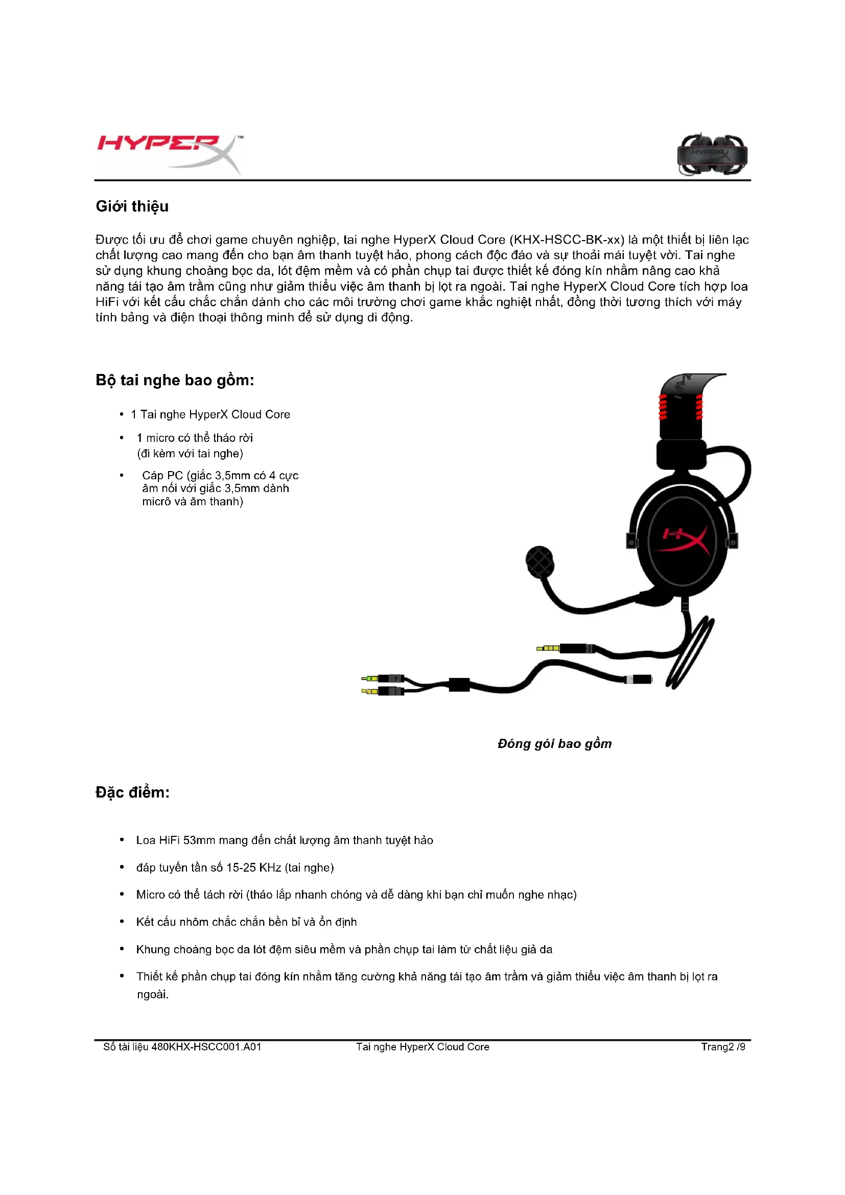 - Đường kính capsule : 6mmSố tài liệu 480KHX-HSCC001.A01 Tai nghe HyperX Cloud Core Trang4 /9