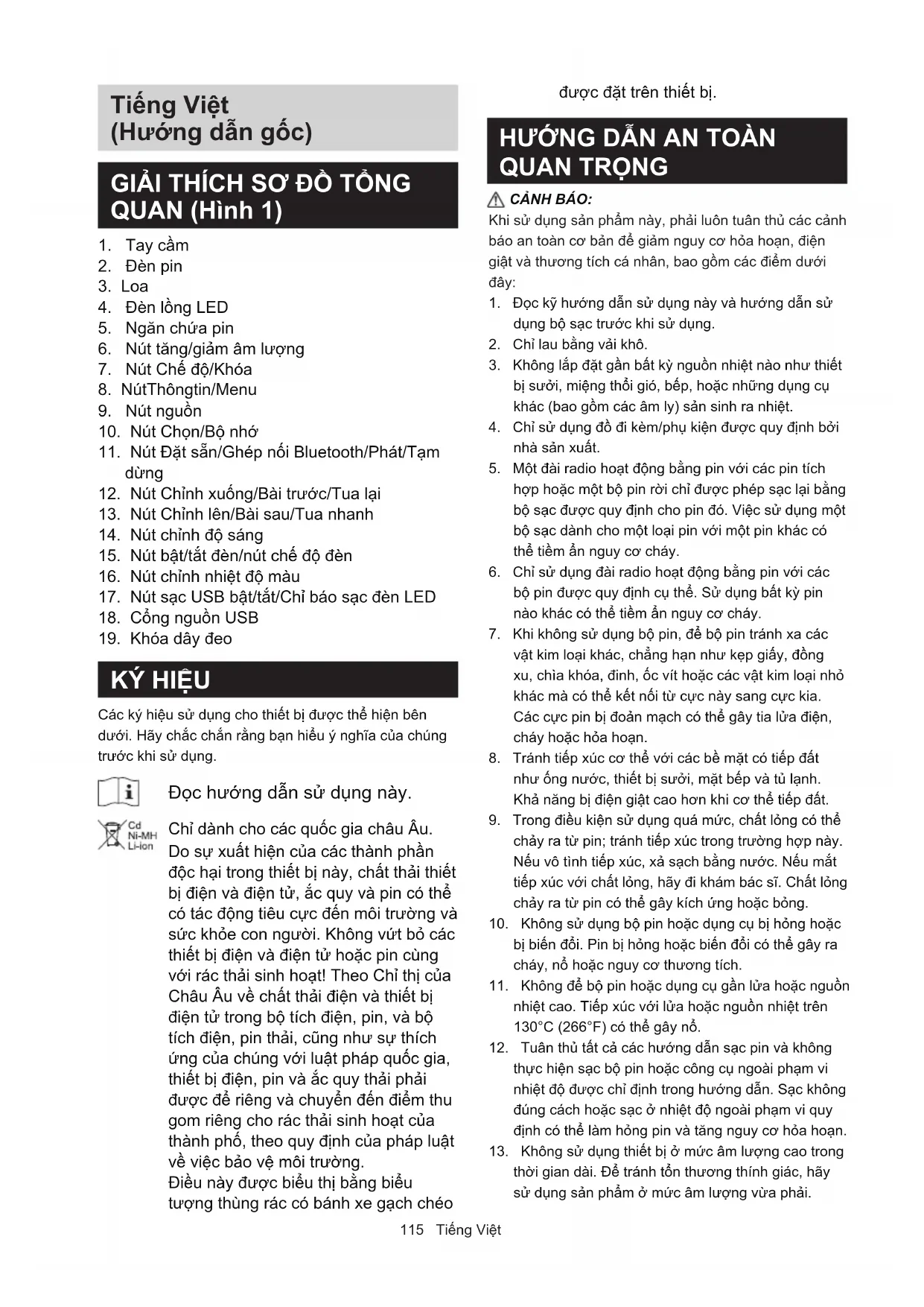 Radio Ket Hợp Đèn Lồng Cầm Tay Hoạt Động Bằng Pin Hướng dẫn sử dụng 115