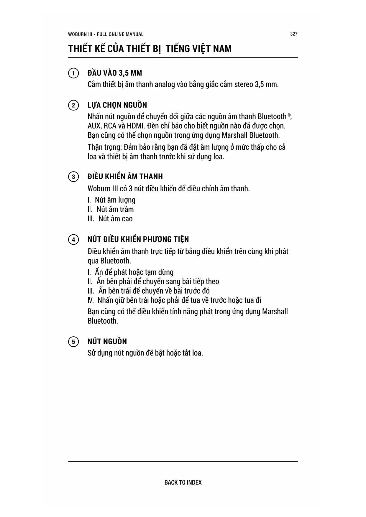 ĐẦU VÀO NGUỒN ĐIỆN Sử dụng các dây dẫn điện đi kèm để cắm Woburn III vào ổ trên tường. THIẾT KẾ CỦA THIẾT BỊ TIẾNG VIỆT NAM329