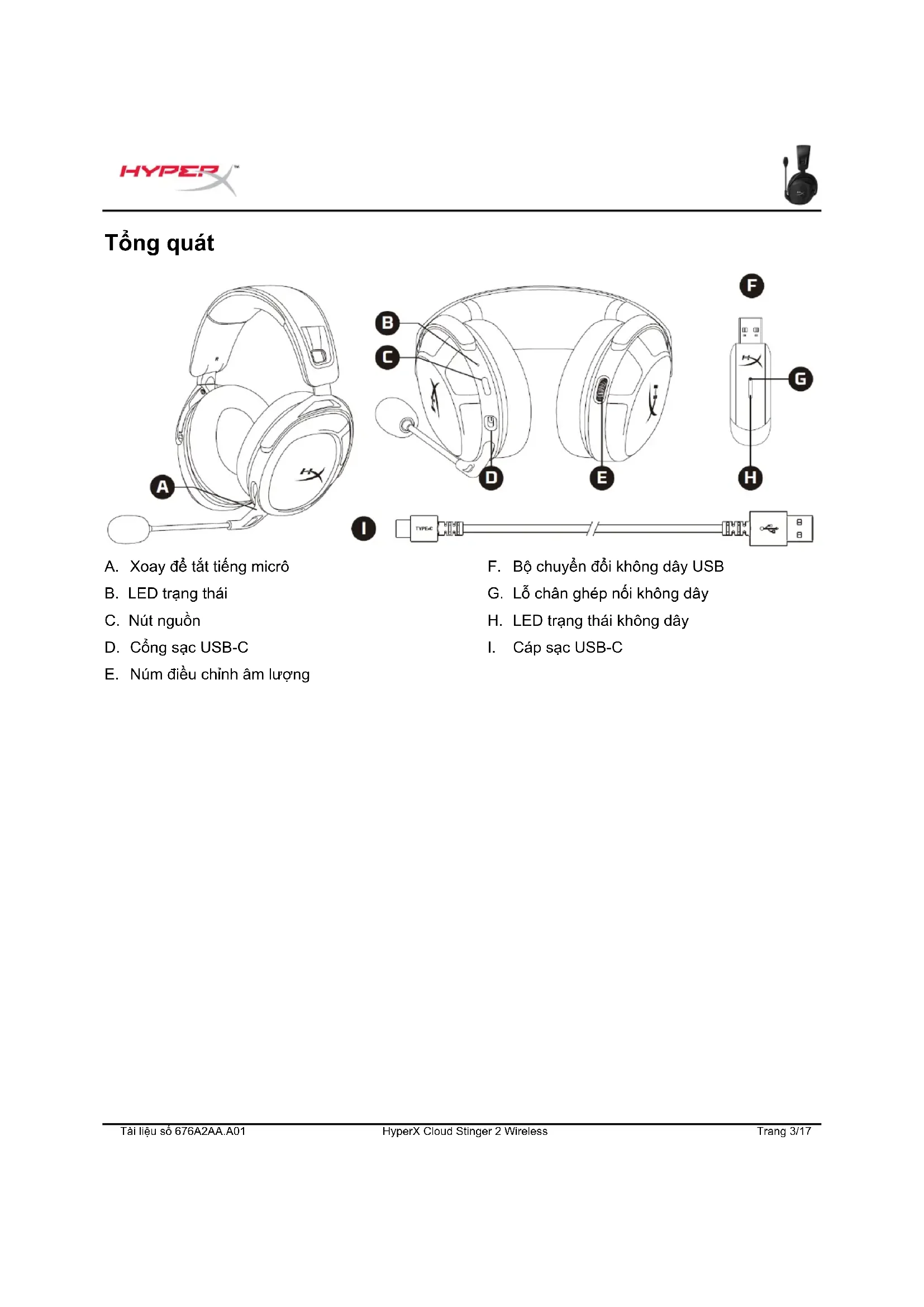 - Đèn báo mức pinTài liệu số 676A2AA.A01 HyperX Cloud Stinger 2 Wireless Trang 17/17