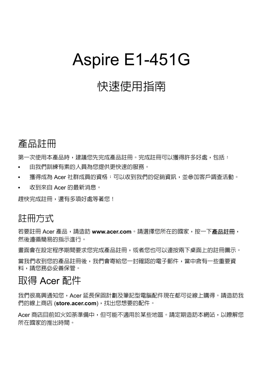 ASPIRE E1-451G - 笔记本电脑 ACER - 免费用户手册