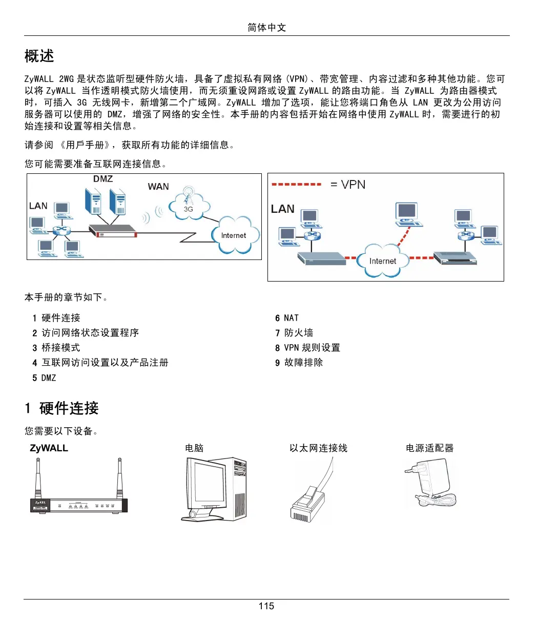 免费查找设备手册 ZYWALL 2WG ZYXEL PDF格式.