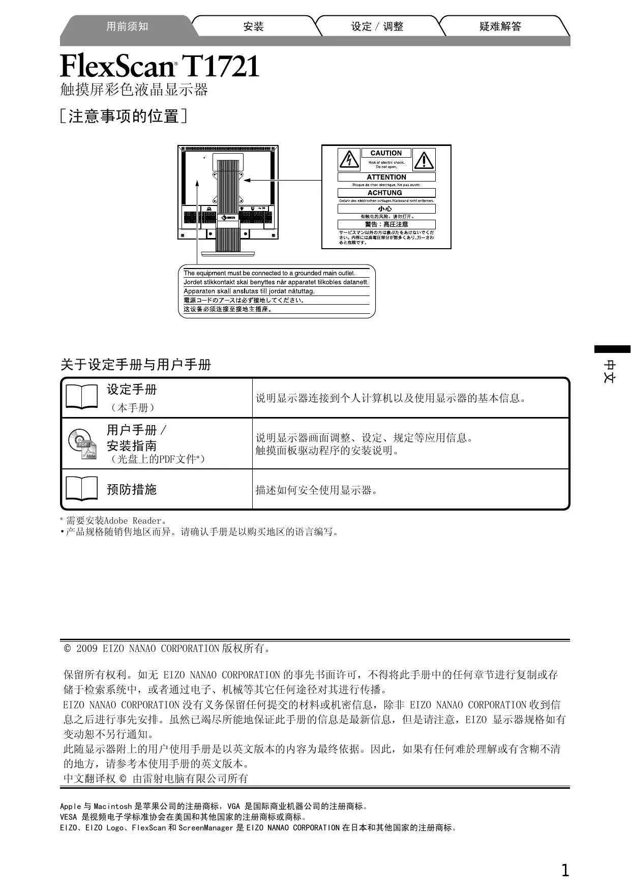 下载您的设备说明 显示器 免费PDF格式!查找您的手册 FLEXSCAN T1721 - EIZO 并重新掌握您的电子设备。本页发布了使用您的设备所需的所有文档。 FLEXSCAN T1721 品牌 EIZO.