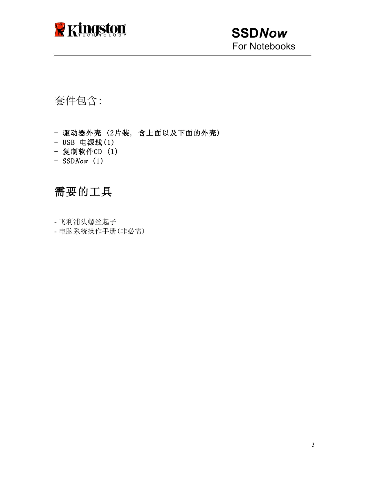 驱动器外壳 (2片装, 含上面以及下面的 外壳) USB 电源线(1) 复制软件CD (1) SSD Now (1)