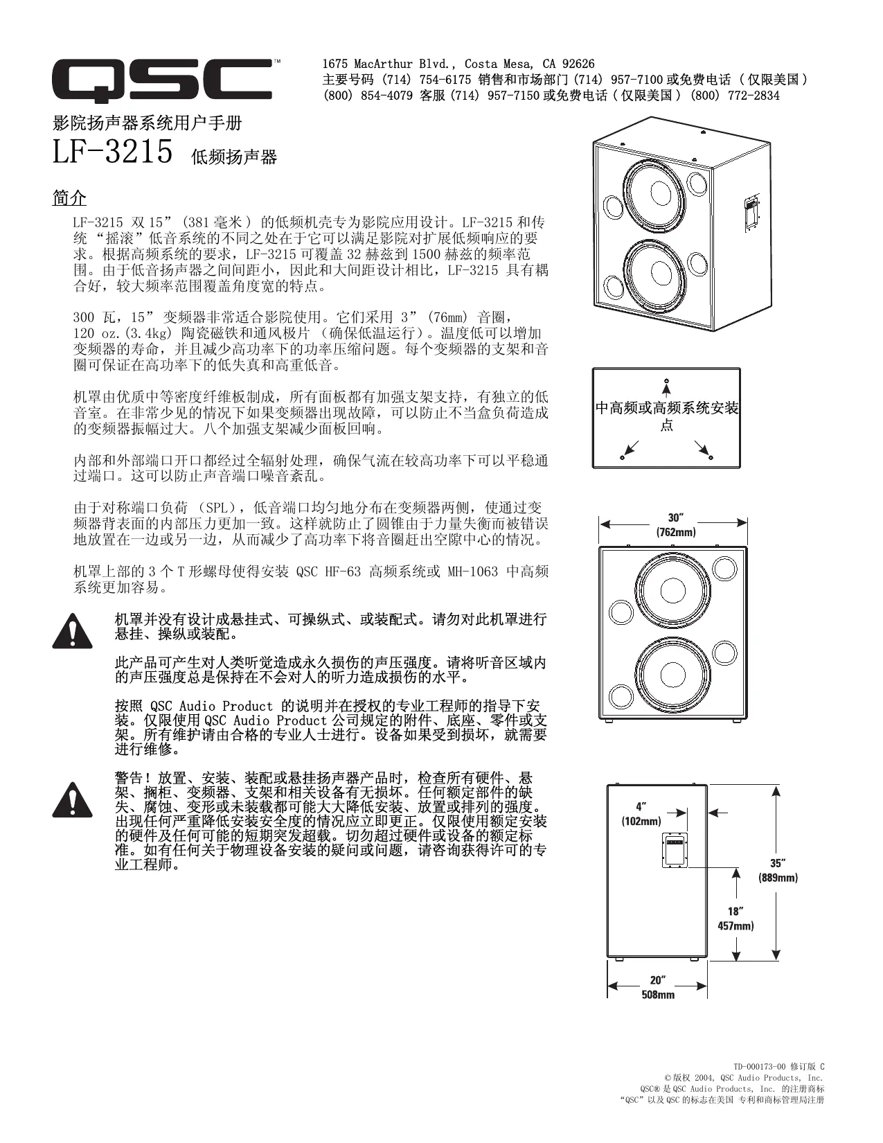 TD-000173-00 修订版 C © 版权 2004, QSC Audio Products, Inc. QSC® 是 QSC Audio Products, Inc. 的注册商标 “QSC”以及 QSC 的标志在美国 专利和商标管理局注册