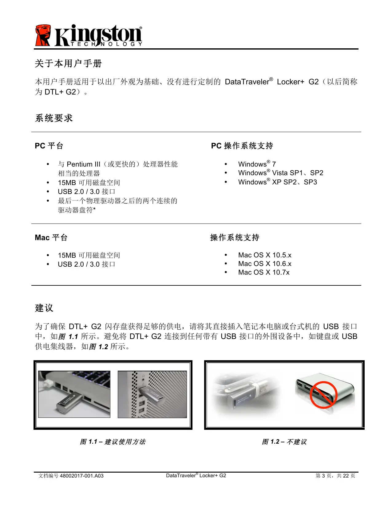 下载您的设备说明 USB闪存盘 免费PDF格式!查找您的手册 DATATRAVELER LOCKER G2/DTLPG2 - KINGSTON 并重新掌握您的电子设备。本页发布了使用您的设备所需的所有文档。 DATATRAVELER LOCKER G2/DTLPG2 品牌 KINGSTON.