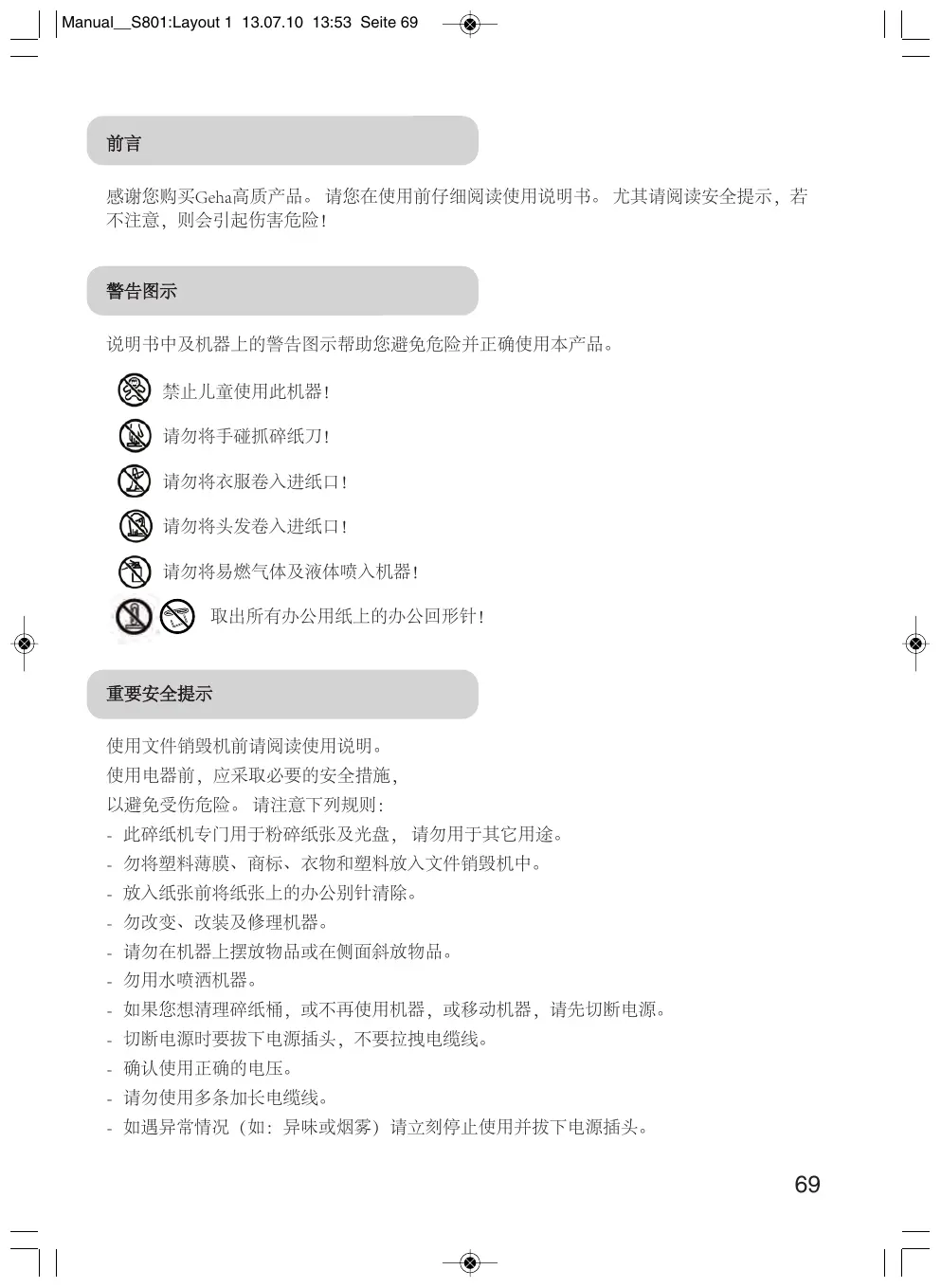 OFFICE X8 CD - 碎纸机 GEHA - 免费用户手册