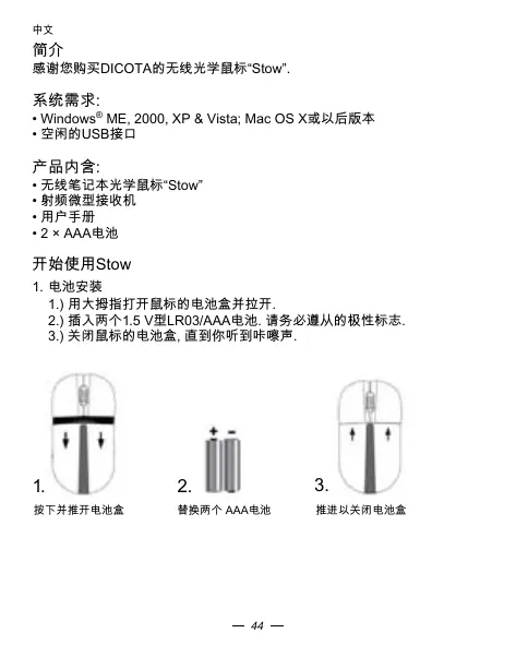 感谢您购买DICOTA的无线光学鼠标“Stow”