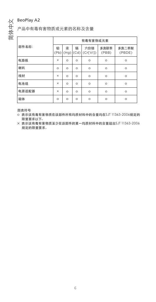 × 表示该有毒有害物质至少在该部件的某一均质材料中的含量超出SJT11363-2006规定的限量要求。