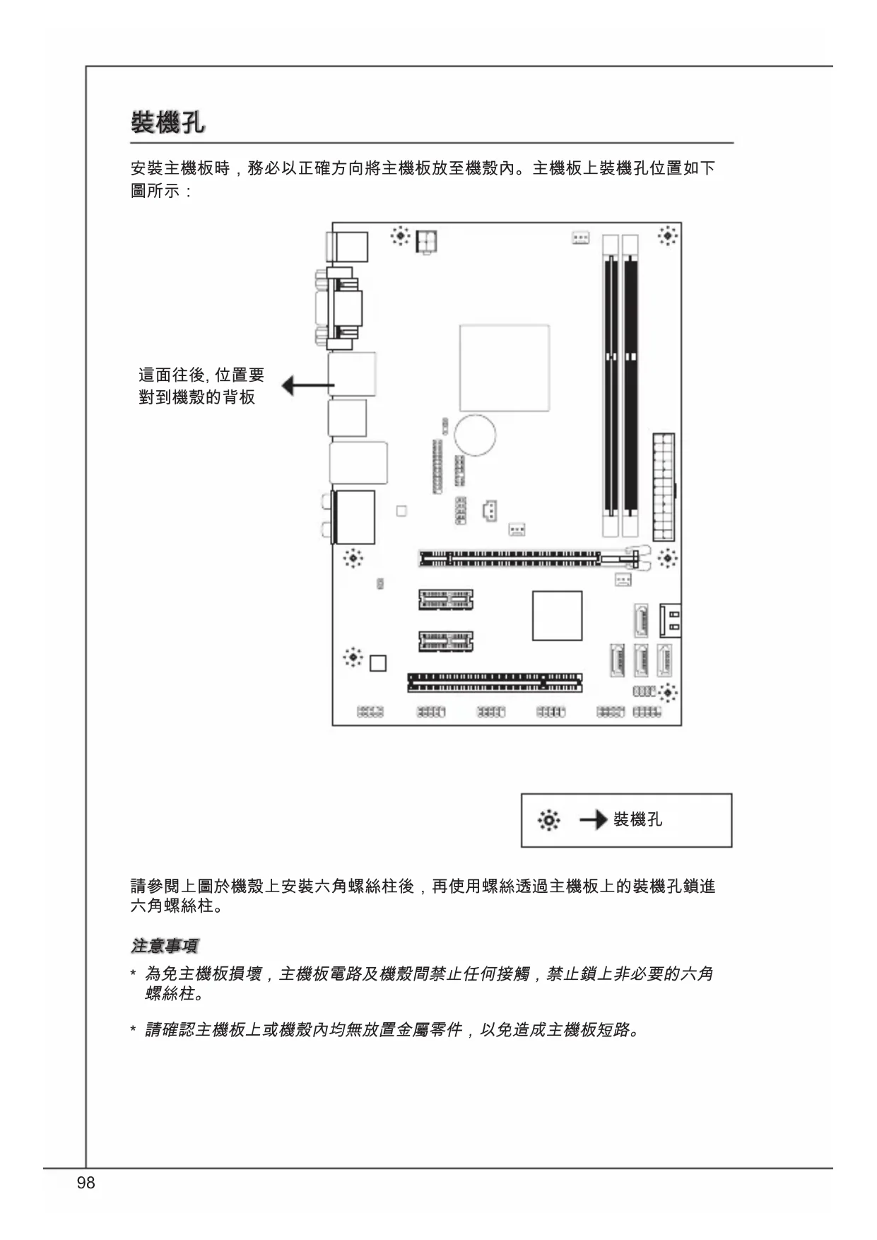 壞,主機板電路及機殼間禁止任何接觸,禁止鎖上非必要的六角