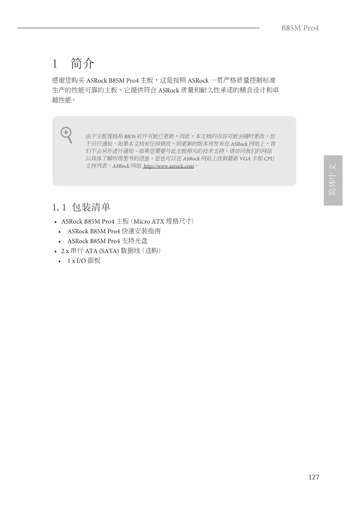 用户手册 B85M Pro4 ASROCK