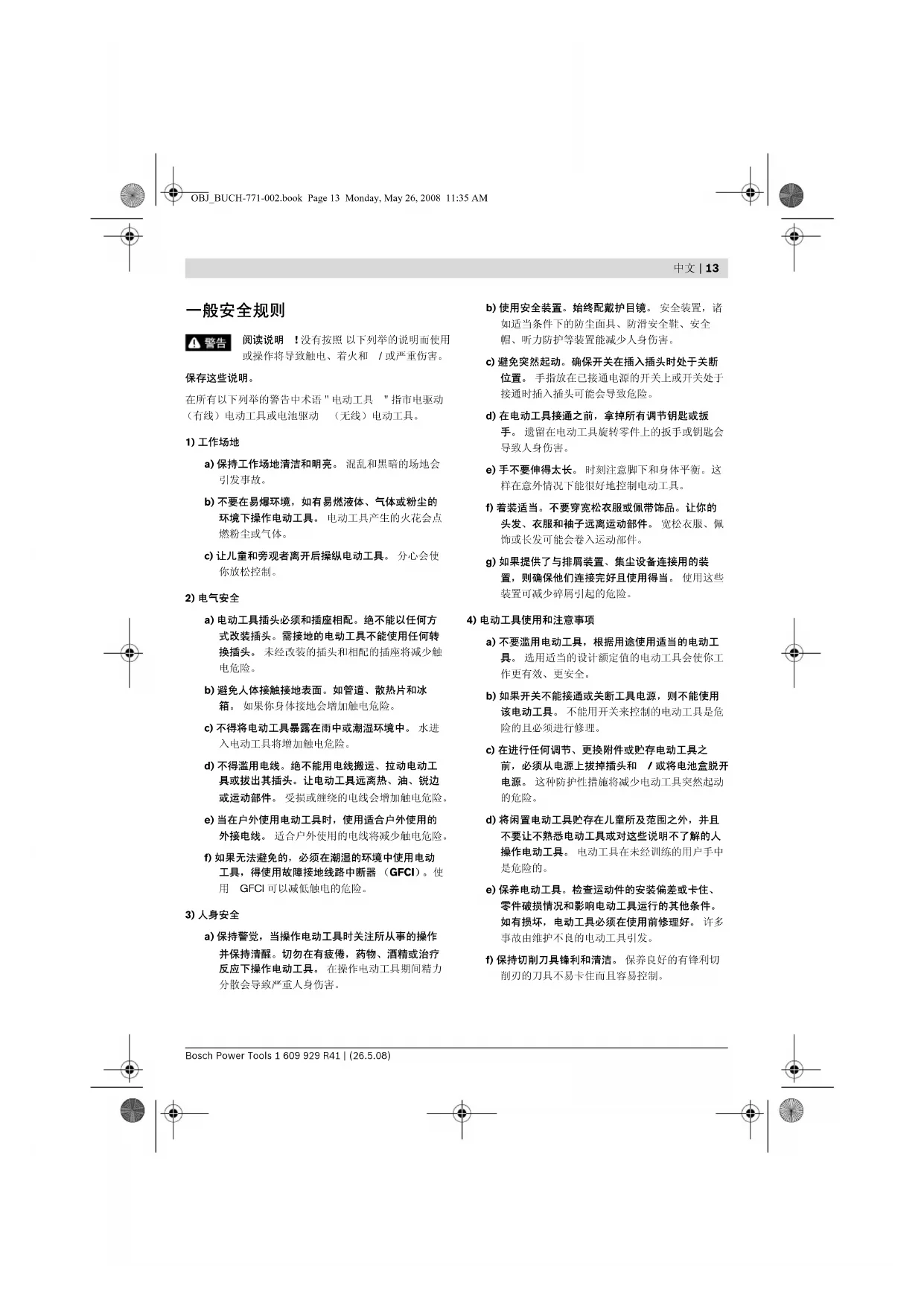 OBJ_BUCH-771-002.book Page 13 Monday, May 26, 2008 11:35 AM1 609 929 R41 | (26.5.08) Bosch Power Tools 14 | 中文