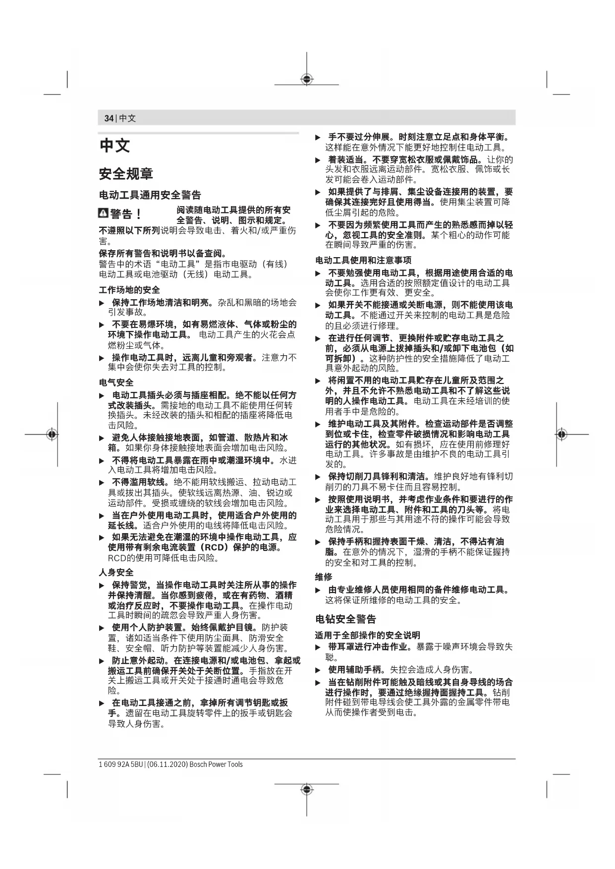 从而使操作者受到电击。 1 609 92A 5BU | (06.11.2020) Bosch Power Tools中文 | 35