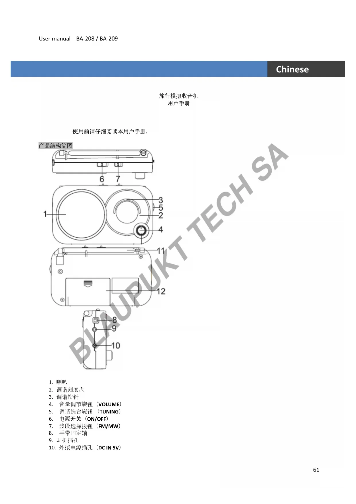 免费查找设备手册 BA209 BLAUPUNKT PDF格式.