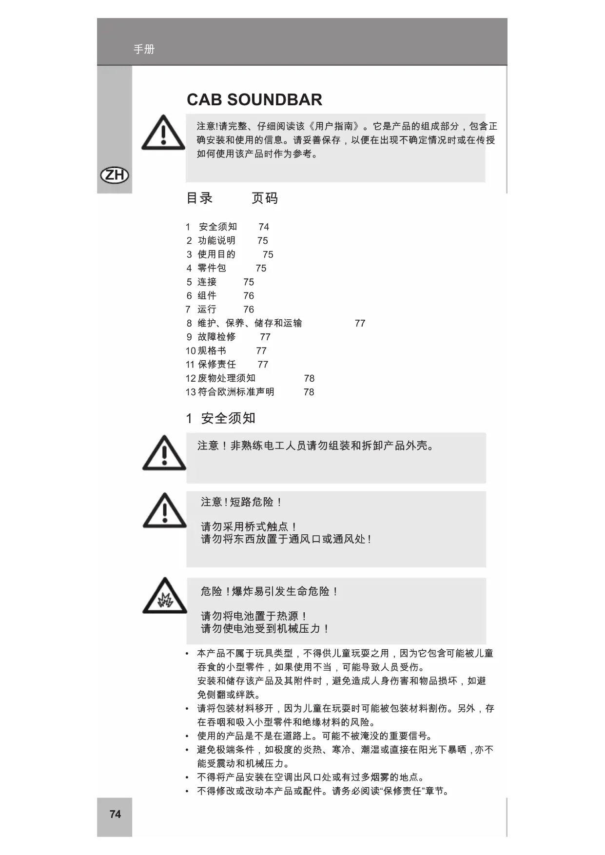 免费查找设备手册 Soundbar 95122 Cabstone PDF格式.