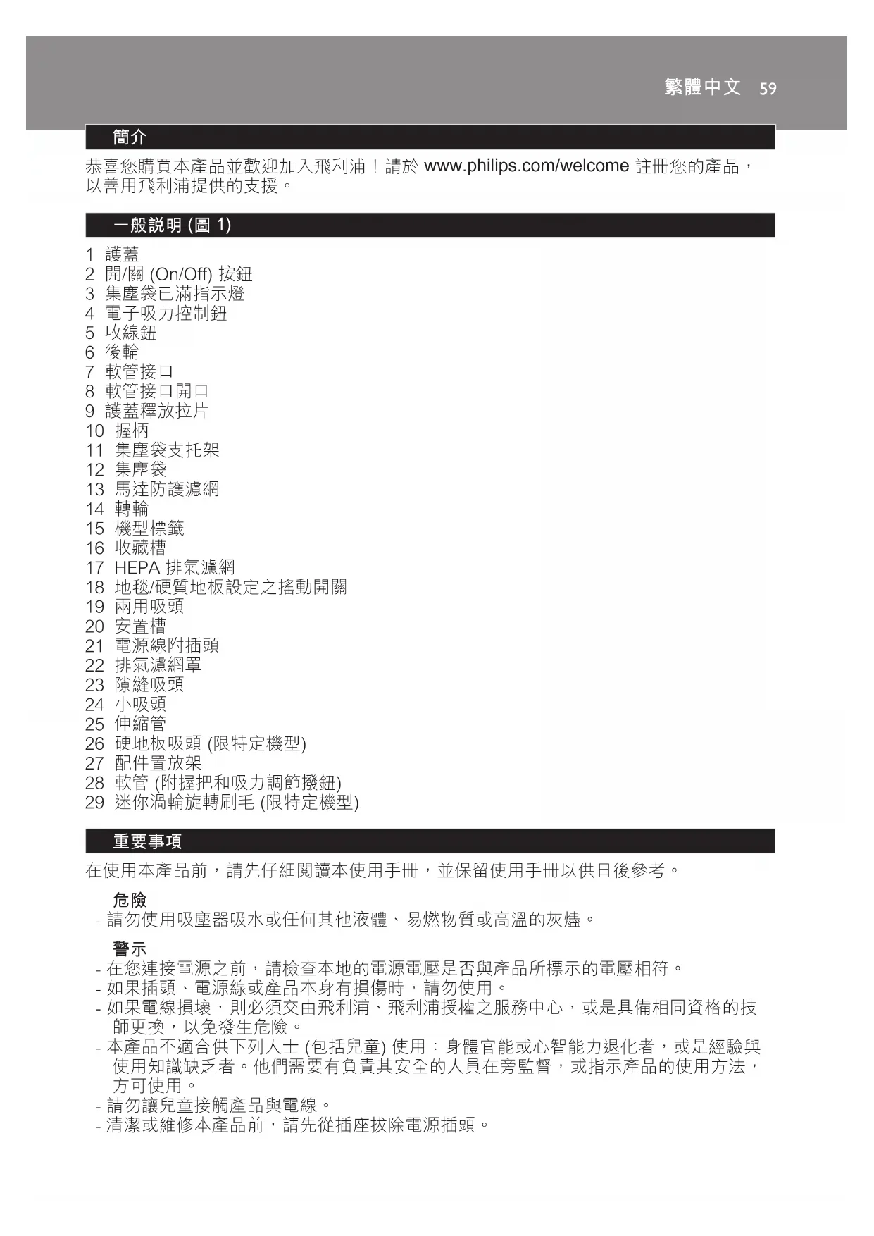 恭喜您購買本產品並歡迎加入飛利浦!請於 www.philips.com/welcome 註冊您的產品,