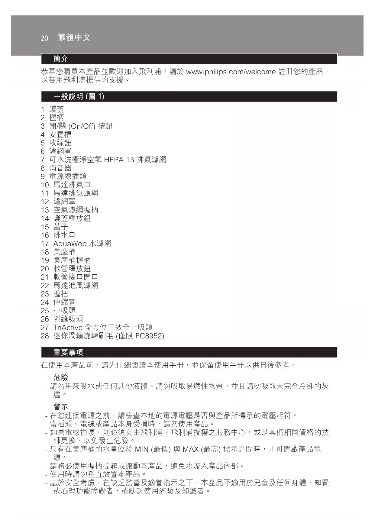 恭喜您購買本產品並歡迎加入飛利浦!請於 www.philips.com/welcome 註冊您的產品,