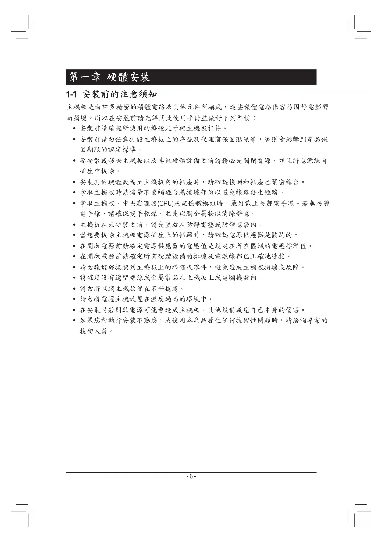 主機板是由許多精密的積體電路及其他元件所構成,這些積體電路很容易因靜電影響