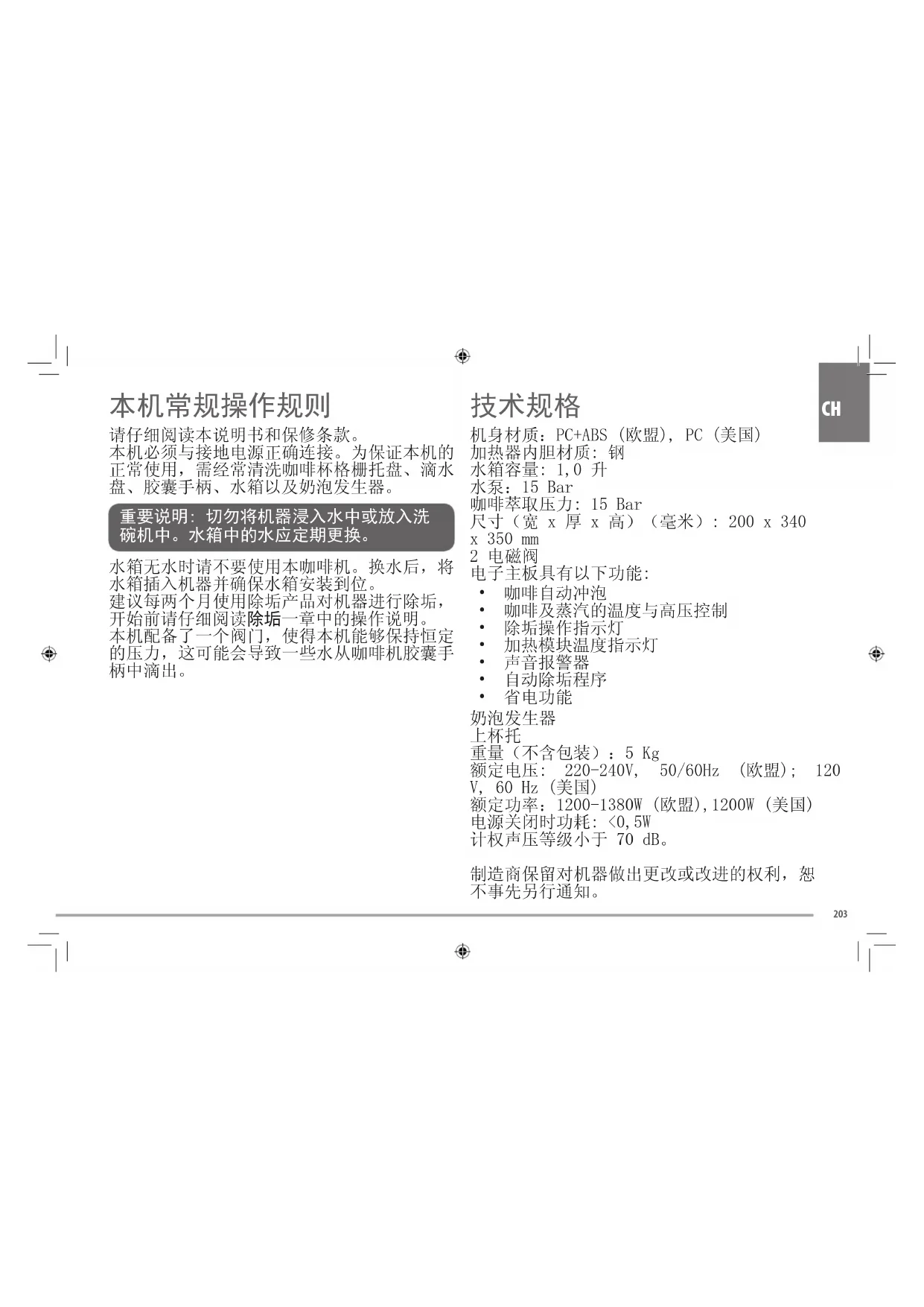 • 本机器被设计用于“制作咖啡”与“加热