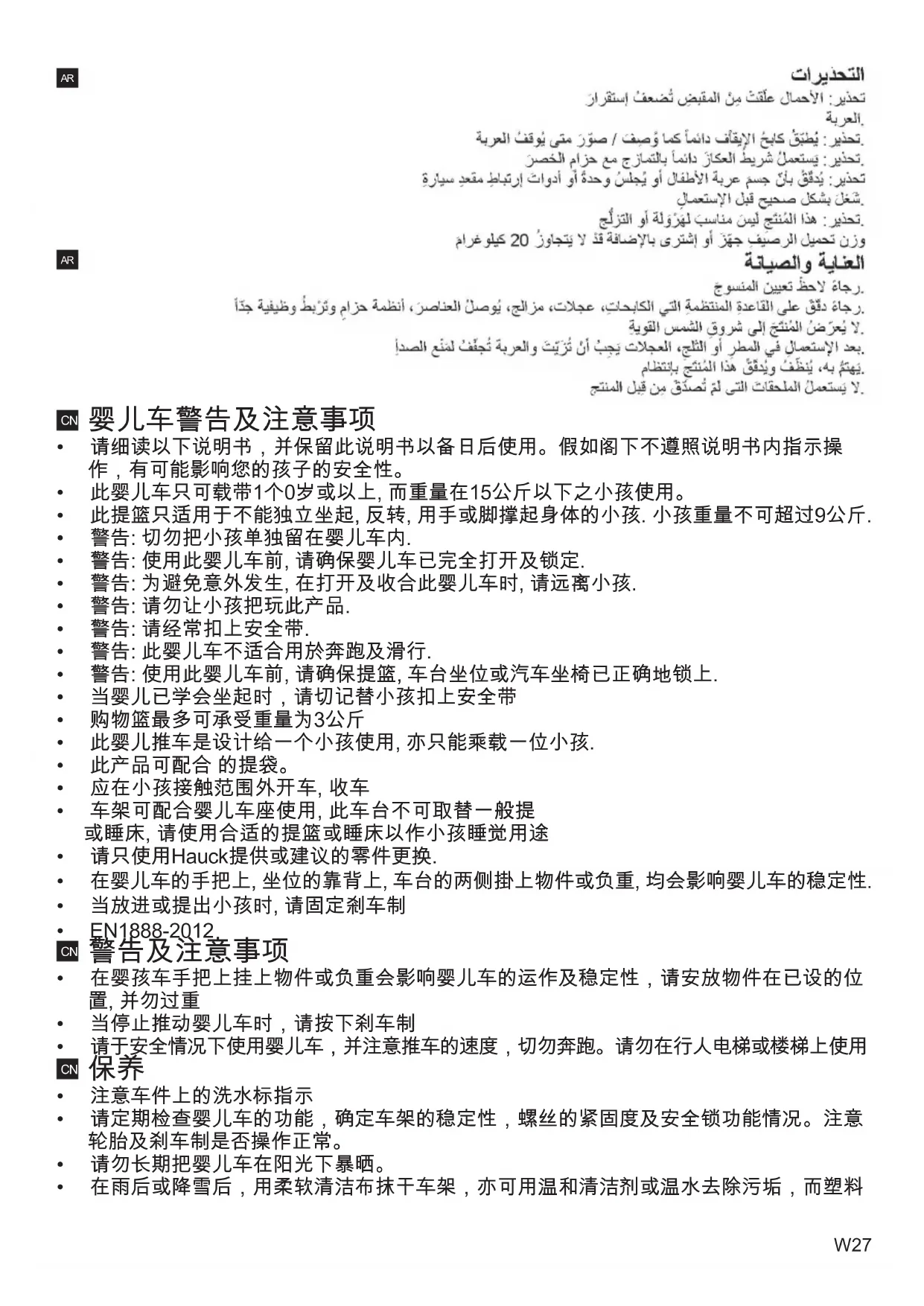 • 警告:使用此婴儿车前,请确保婴儿车已完全打开及锁定.