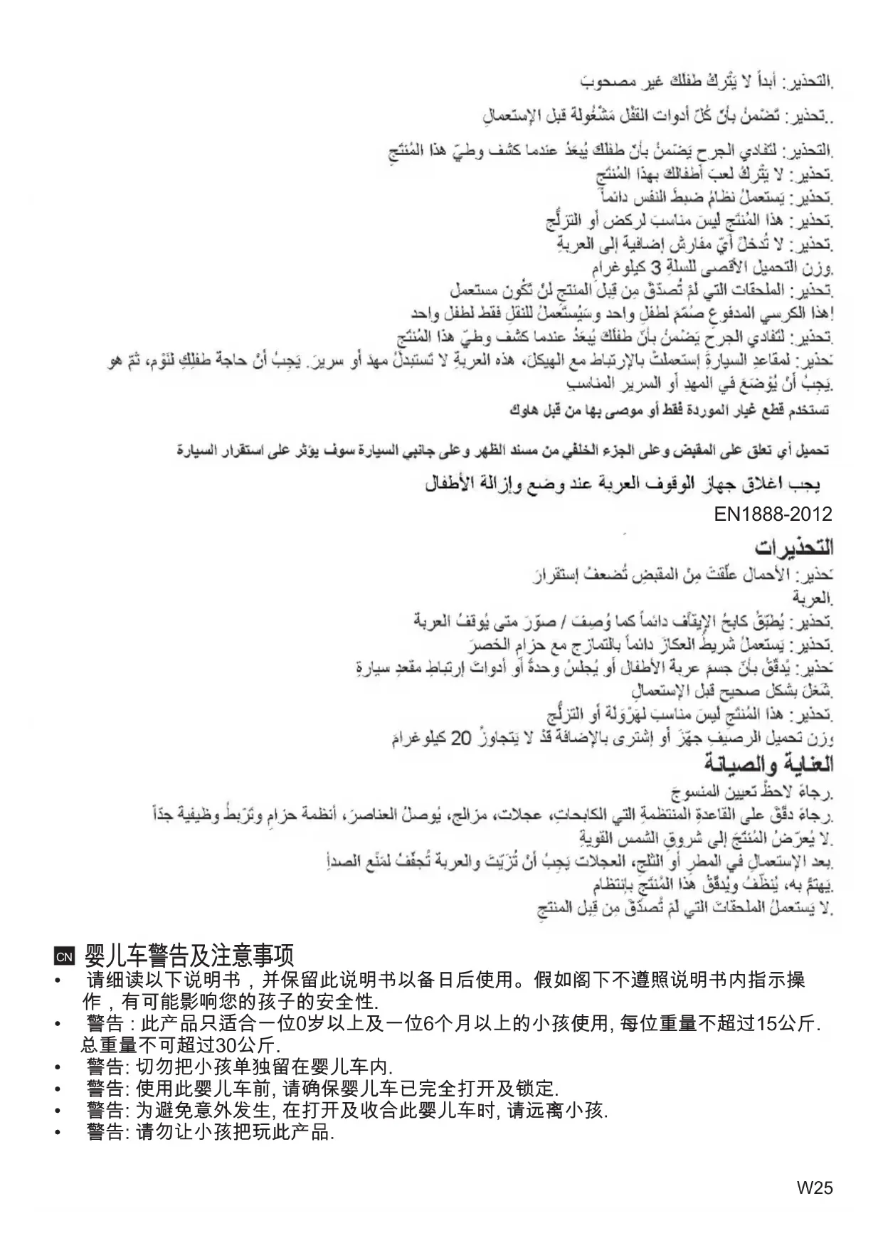 • 警告:使用此婴儿车前,请确保婴儿车已完全打开及锁定.