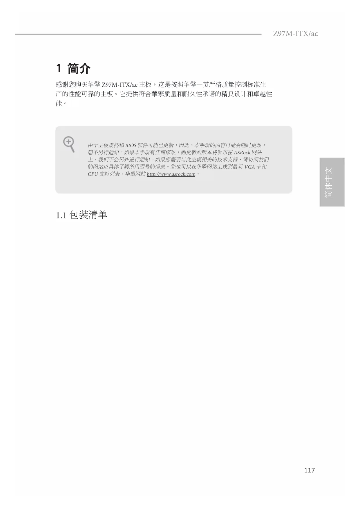 感谢您购买华擎 Z97M-ITX/ac 主板,这是按照华擎一贯严格质量控制标准生