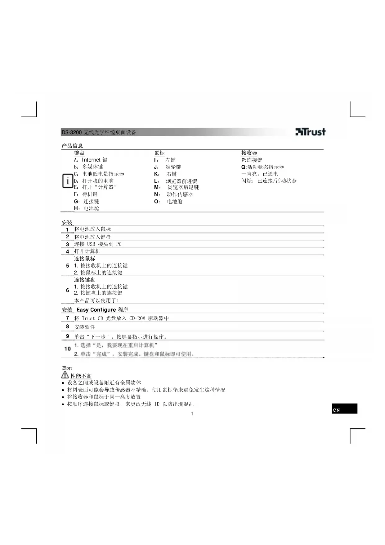 - 不要将新旧电池混在一起使用,因为旧电池会耗尽新电池的电量。 如果您有问题,请访问 www.trust.com/14627 来查看 FAQ、获取软件以及使用手册。由于键盘布局多种多样, 因此本产品可能有不同的项目编号,但基本上与 14627 的相同。 如果需要扩展服务,请在 www.trust.com/register 进行注册。