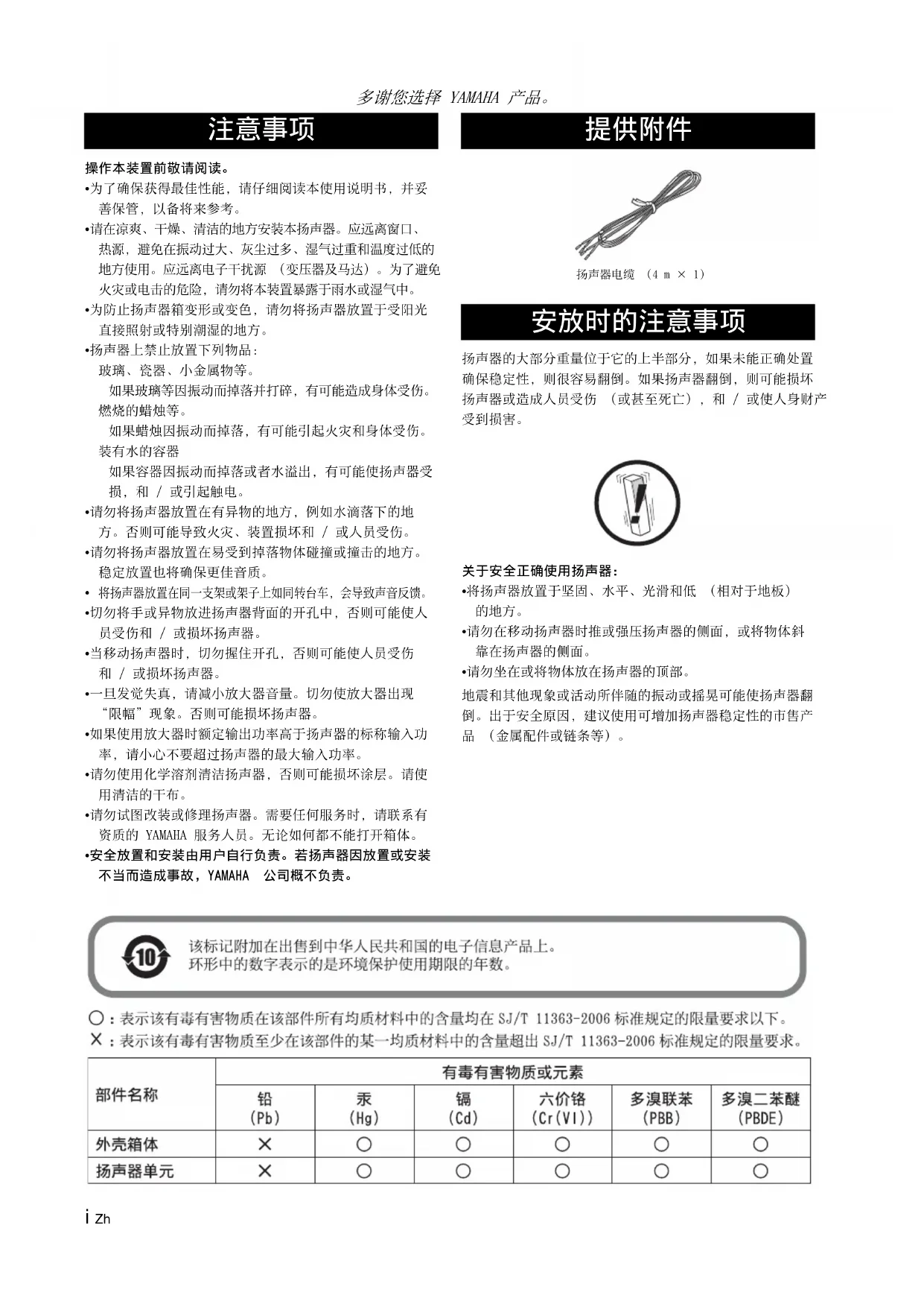 用户手册 NSPC210 YAMAHA