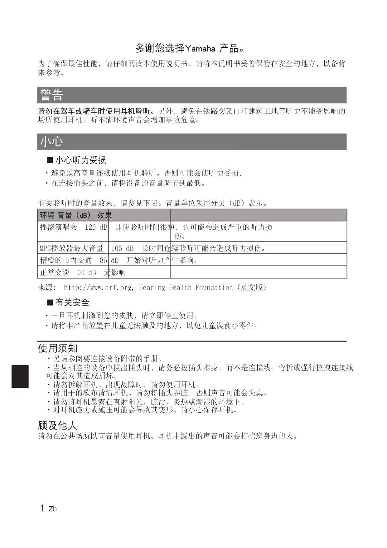 HPHM82 - Ecouteur YAMAHA - 免费用户手册