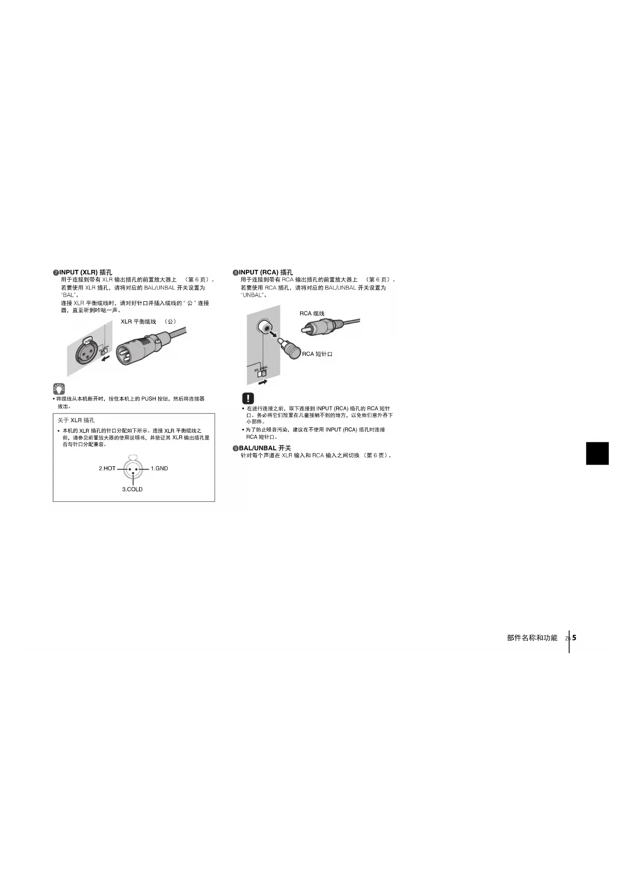 用于连接到带有 XLR 输出插孔的前置放大器上 (第 6 页)。