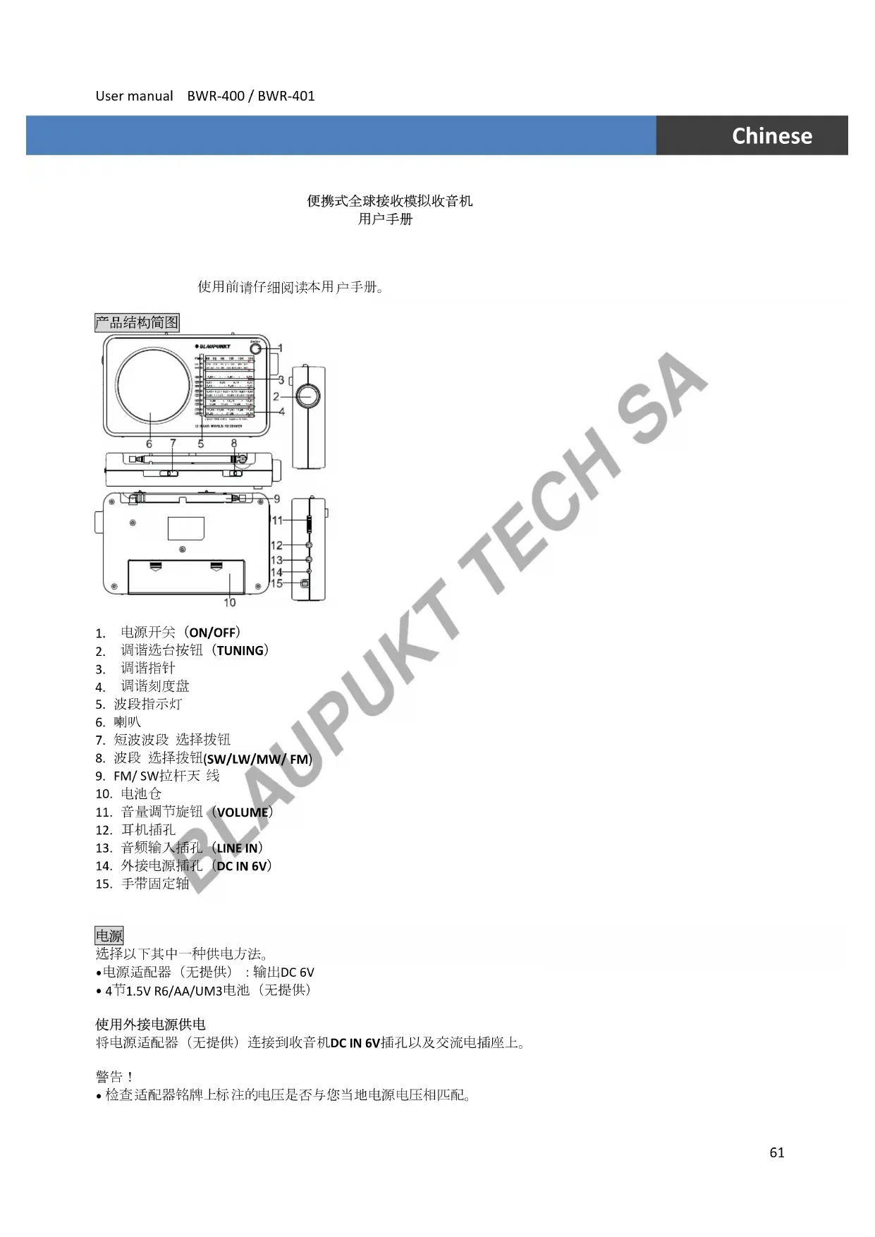 用户手册 BWR401 BLAUPUNKT