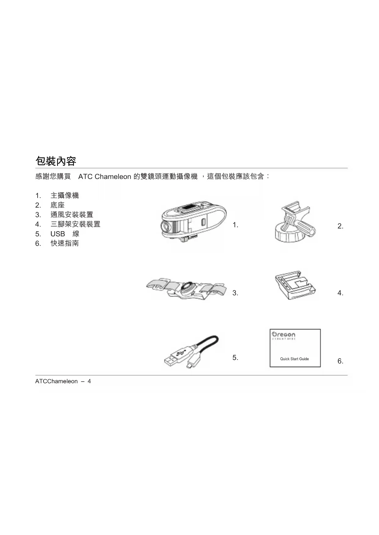 感謝您購買 ATC�Chameleon�的雙鏡頭運動攝像機�,這個包裝應該包含: