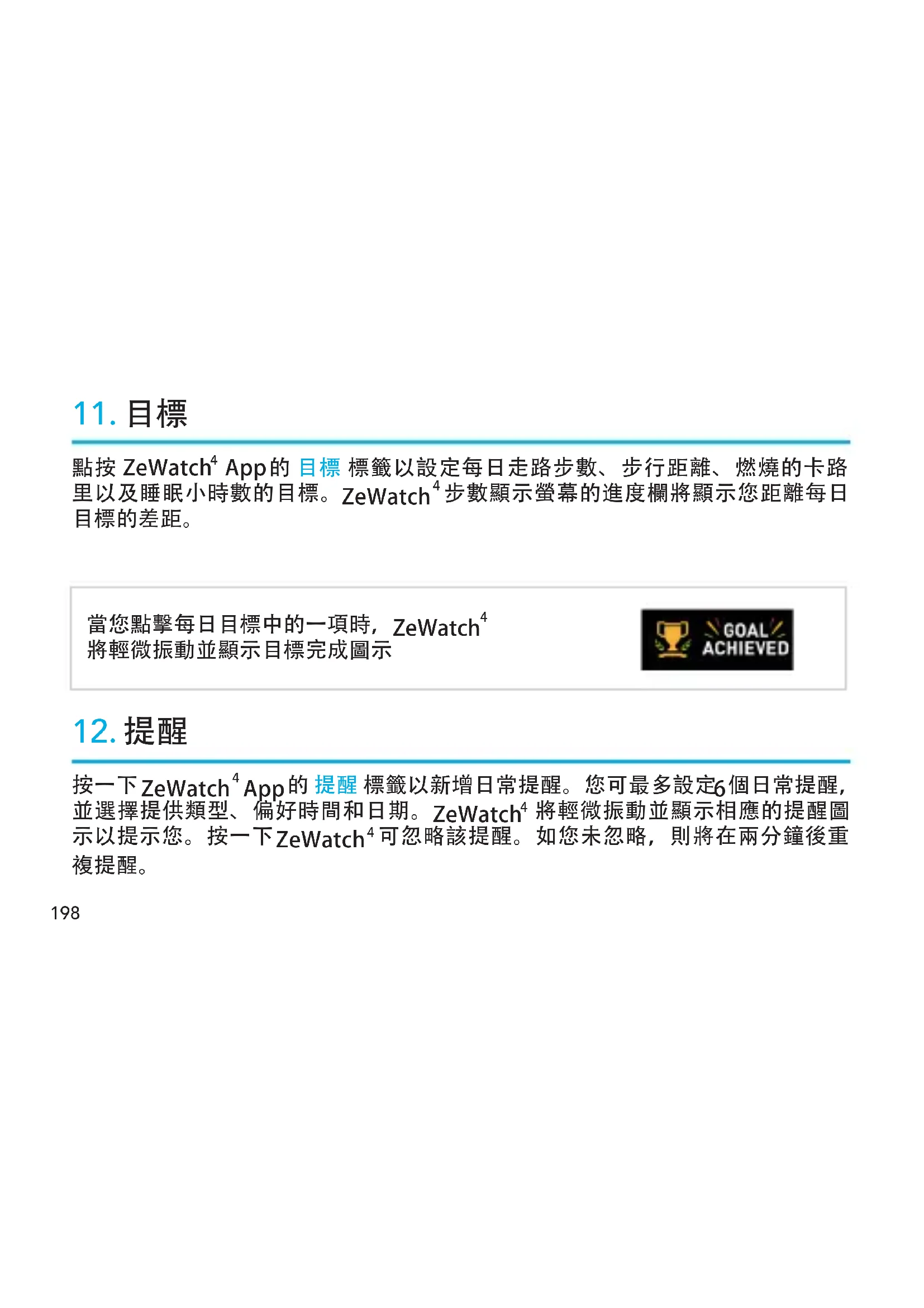 ZeWatch4 會自動與配對的行動裝置(僅限 iOS7 以上版本和 Android 4.3 以上版本同步時間和資料。您可從 ZeWatch4 App 的設定標籤中手動設定偏好的日期和時間格式。務必確保裝置保持有電狀態,以免時間遭到重設。