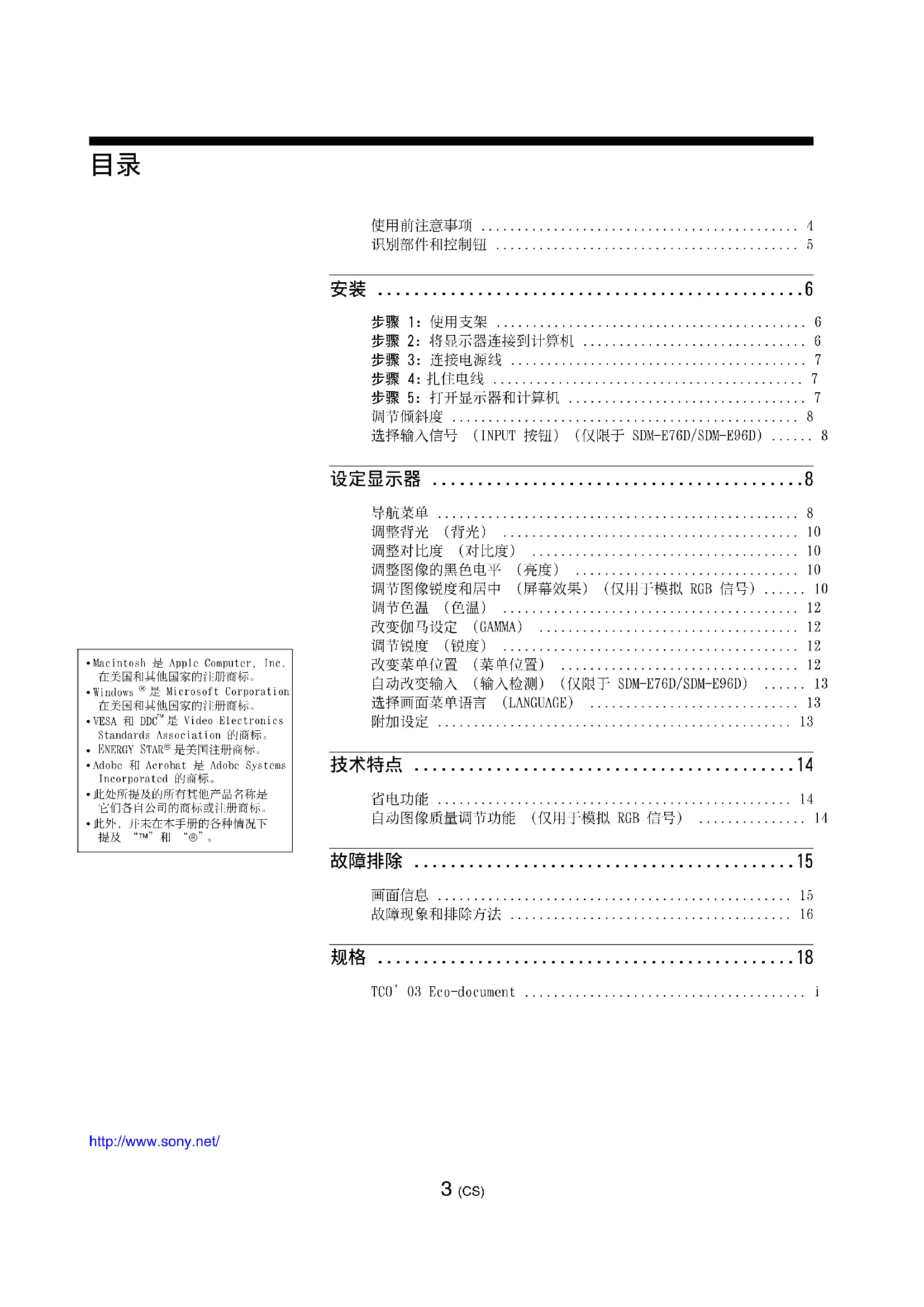 自动改变输入 (输入检测)(仅限于 SDM-E76D/SDM-E96D) ...... 13