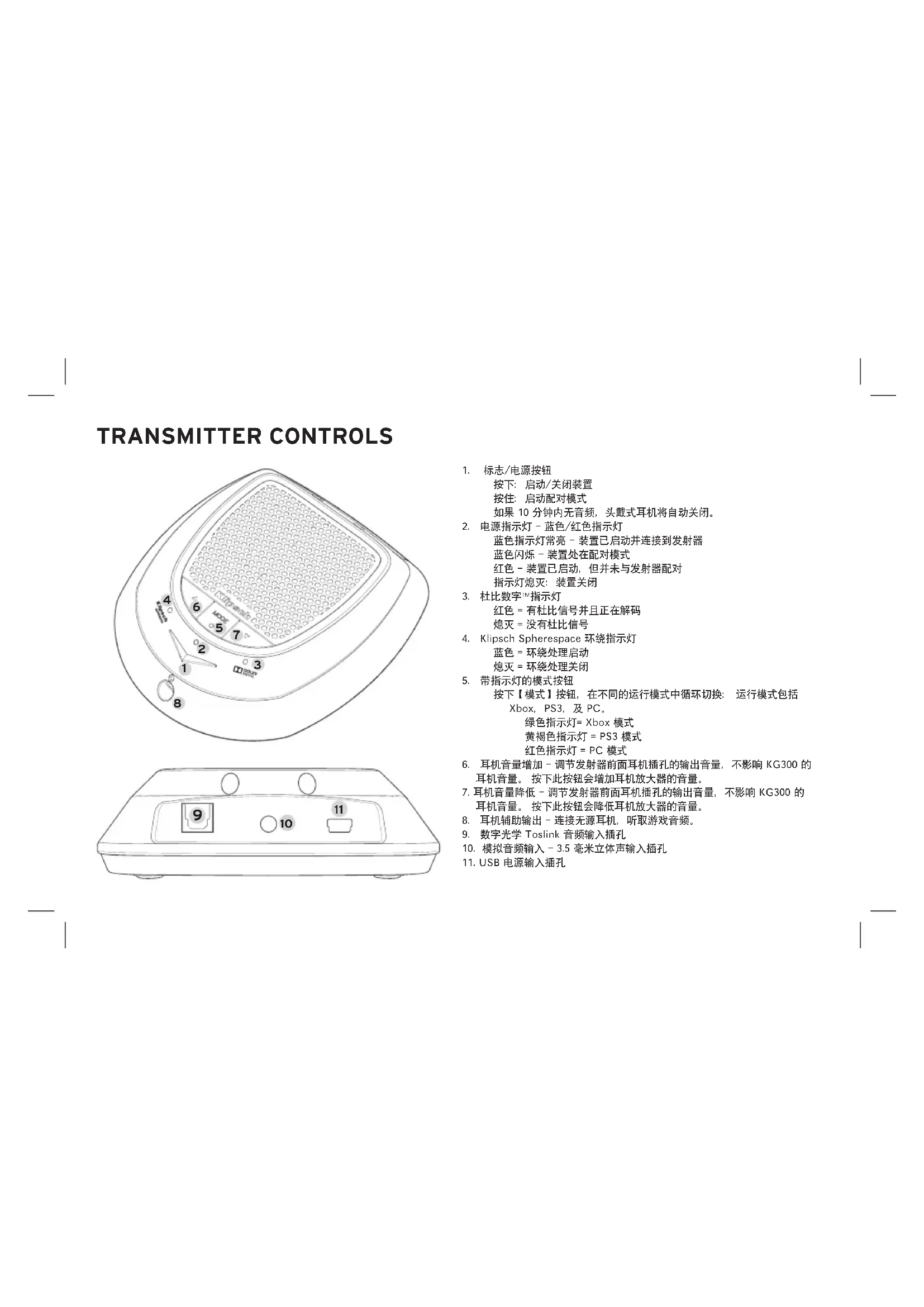 7. 耳机音量降低 - 调节发射器前面耳机插孔的输出音量,不影响 KG300 的