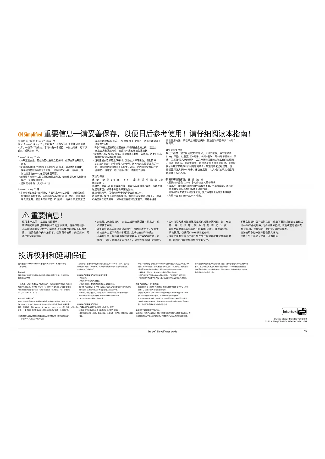 Bed EN 716-1:2017+AC:2019CN Simplied 重要信息—请妥善保存,以便日后参考使用!请仔细阅读本指南! 祝贺您有了新的Stokke™Sleepi™! 有了Stokke®Sleepi™,您就有了一张从宝宝出生起便可使用的 小床,一直陪伴他成长。它可以是一个摇篮、一张幼儿床,还可以