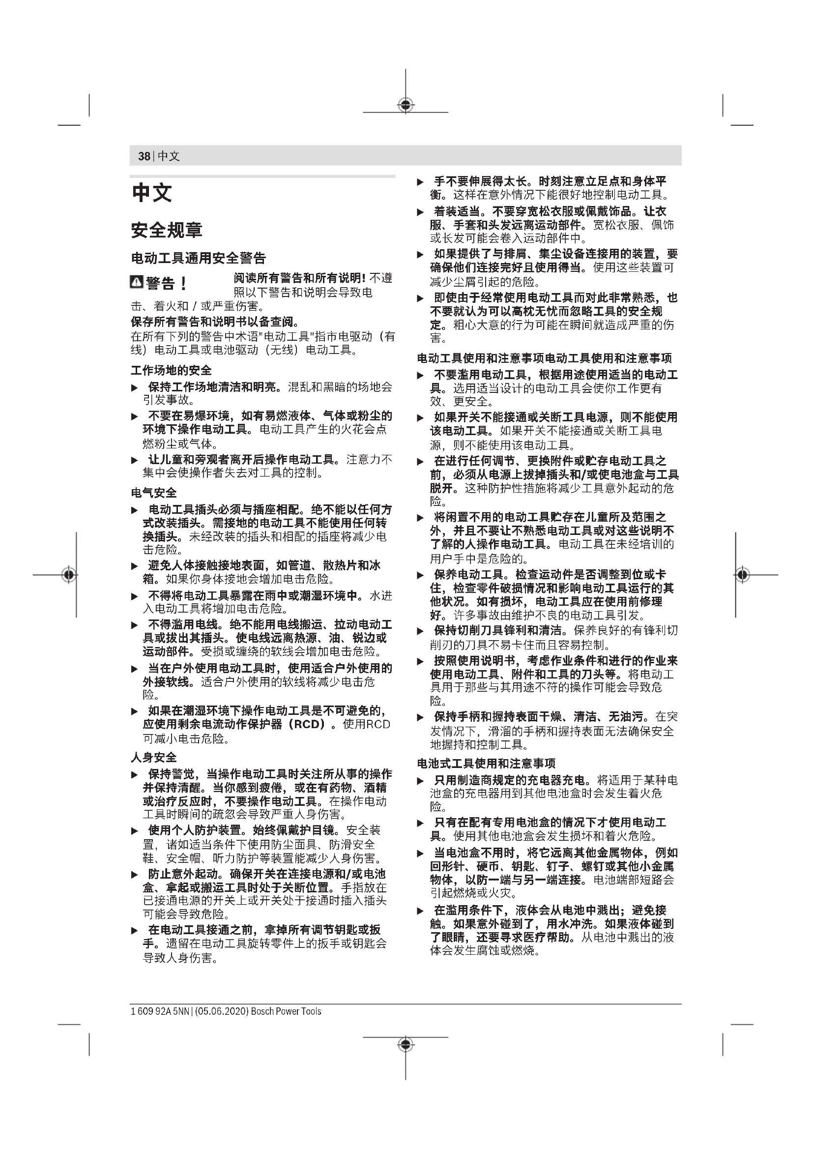 阅读所有警告和所有说明! 不遵 照以下警告和说明会导致电 击、着火和/或严重伤害。 保存所有警告和说明书以备查阅。 在所有下列的警告中术语"电动工具"指市电驱动(有 线)电动工具或电池驱动(无线)电动工具。
