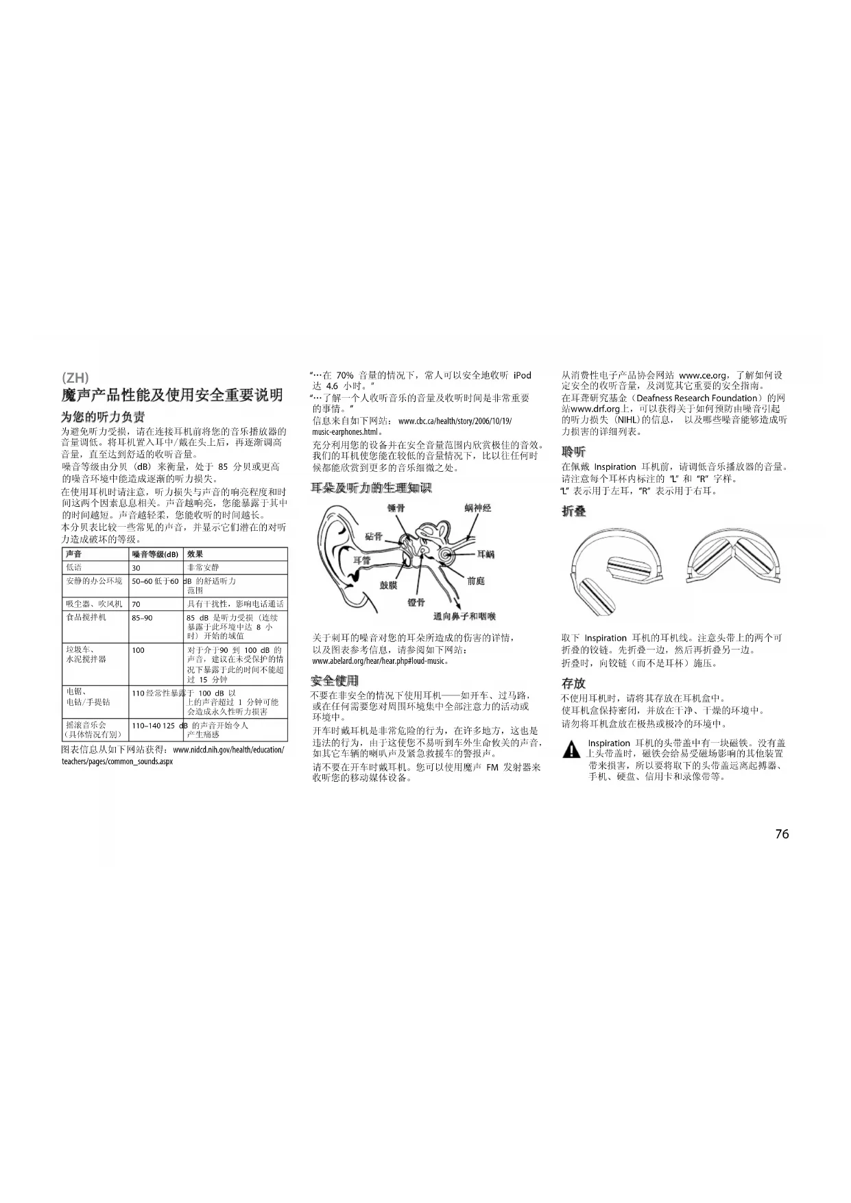 从消费性电子产品协会网站 www.ce.org,了解如何设定安全的收听音量,及浏览其它重要的安全指南。在耳聋研究基金(Deafness Research Foundation)的网站www.drf.org上,可以获得关于如何预防由噪音引起的听力损失(NIHL)的信息,以及哪些噪音能够造成听力损害的详细列表。