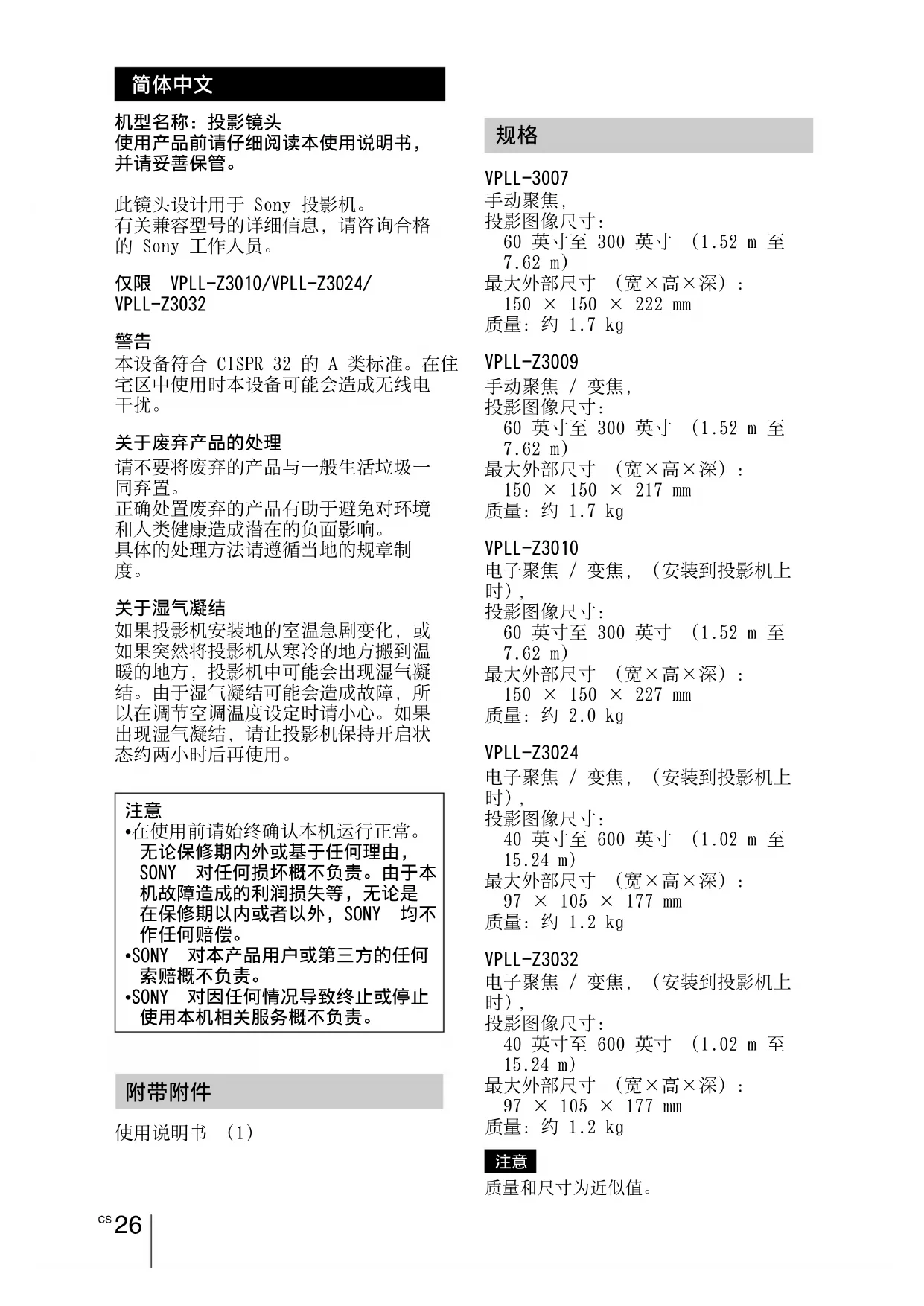 VPLLZ3024 - 投影仪配件 SONY - 免费用户手册