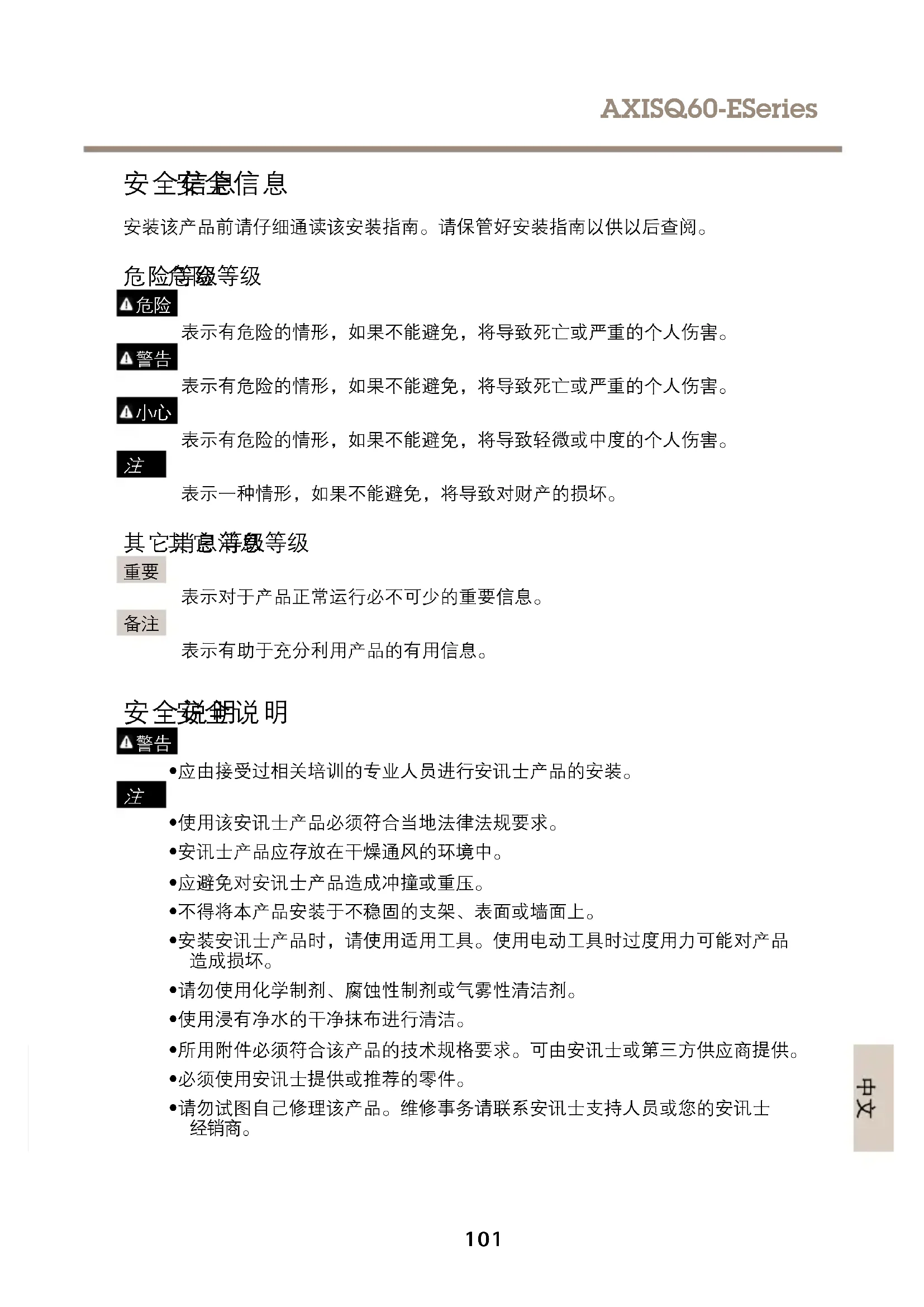 - 应由接受过相关培训的专业人员进行安讯士产品的安装。