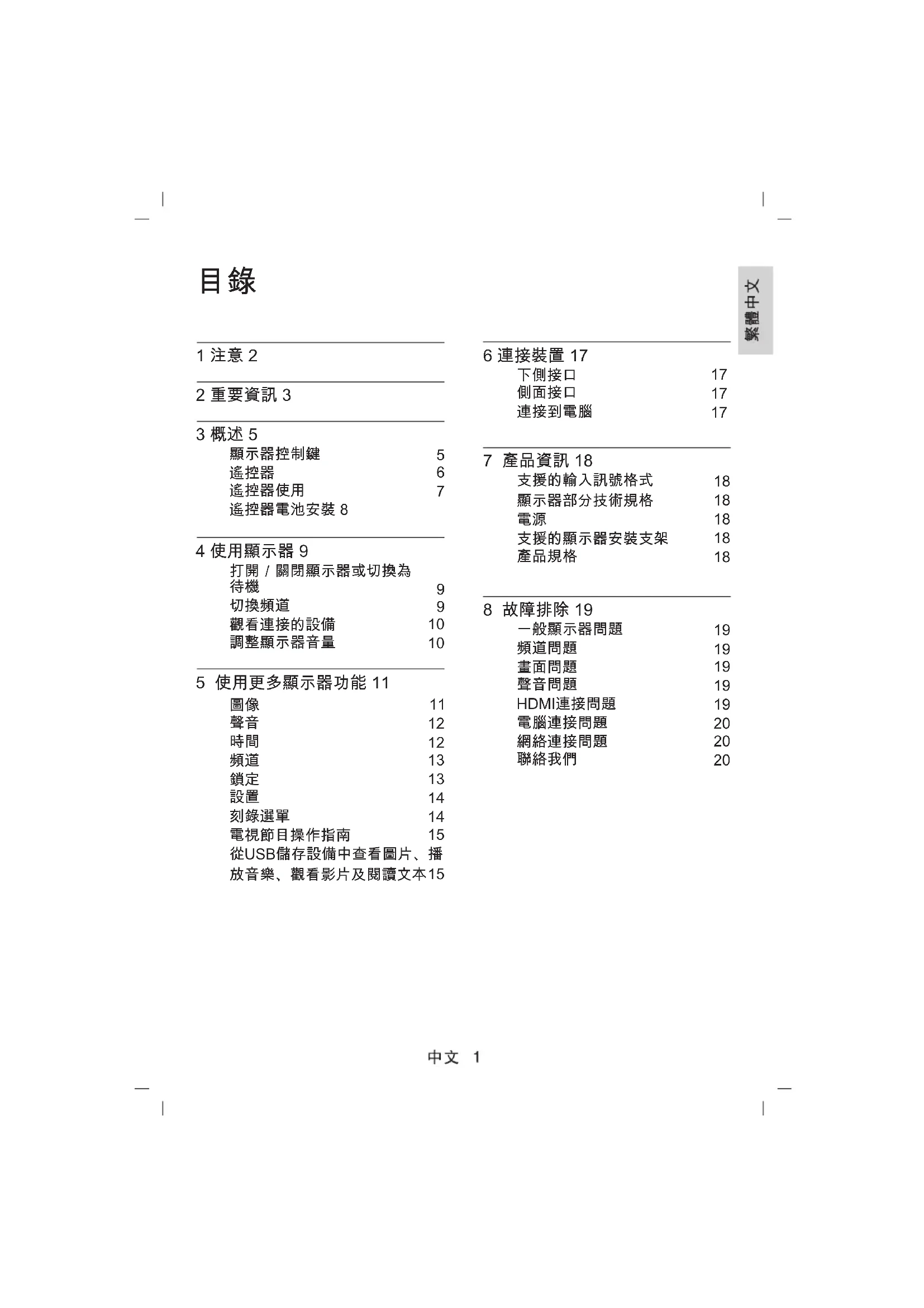 2 重要資訊 開始使用顯示器之前,請閱讀並了解 所有說 如果未按照說明操作而導 致損壞,則不 範圍內。