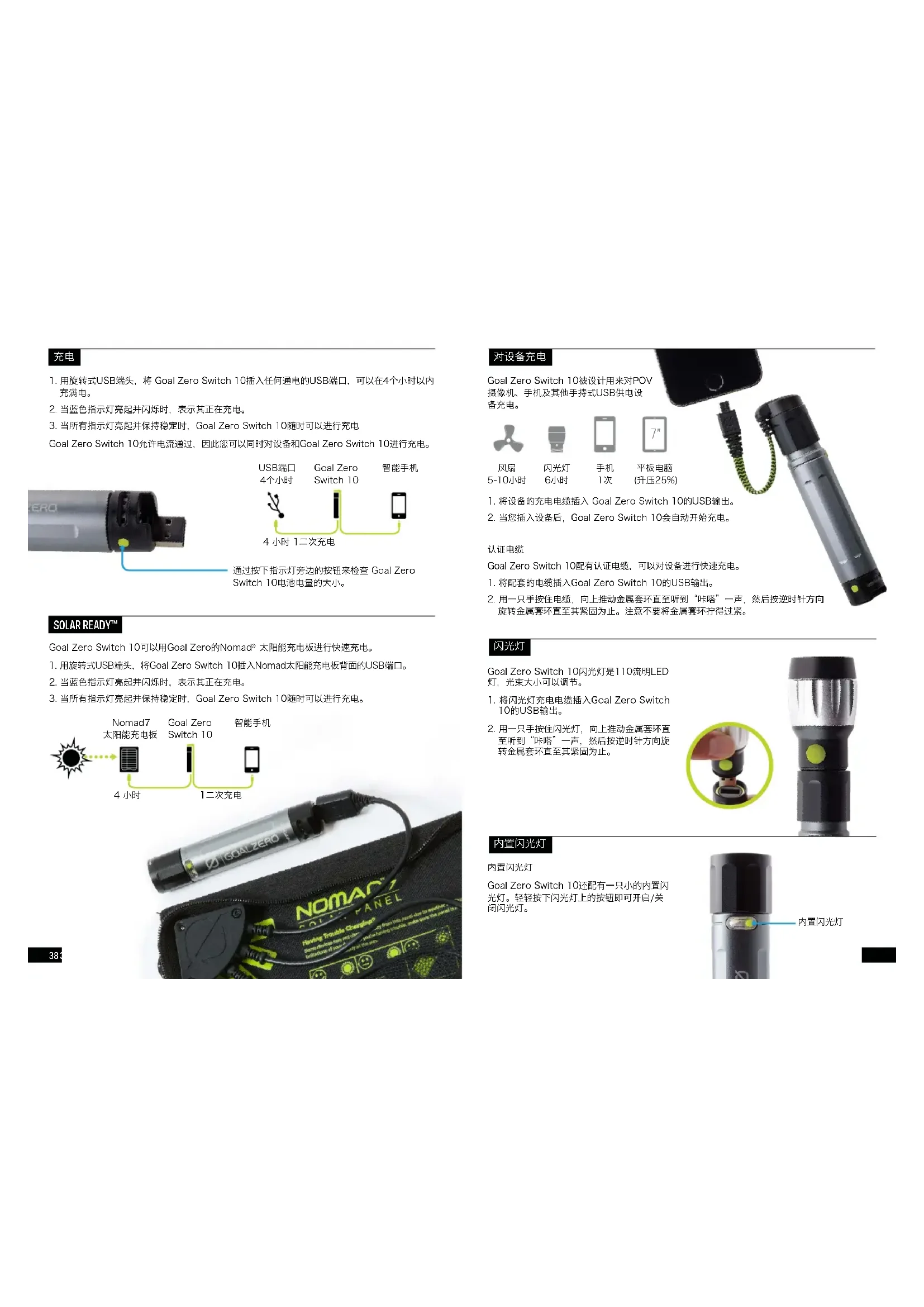 保护系统 内置充电和低电量保护系统 请勿忘记在goalzero.com/warranty激活保修期 Goal Zero Switch 10充电器 风扇 闪光灯42