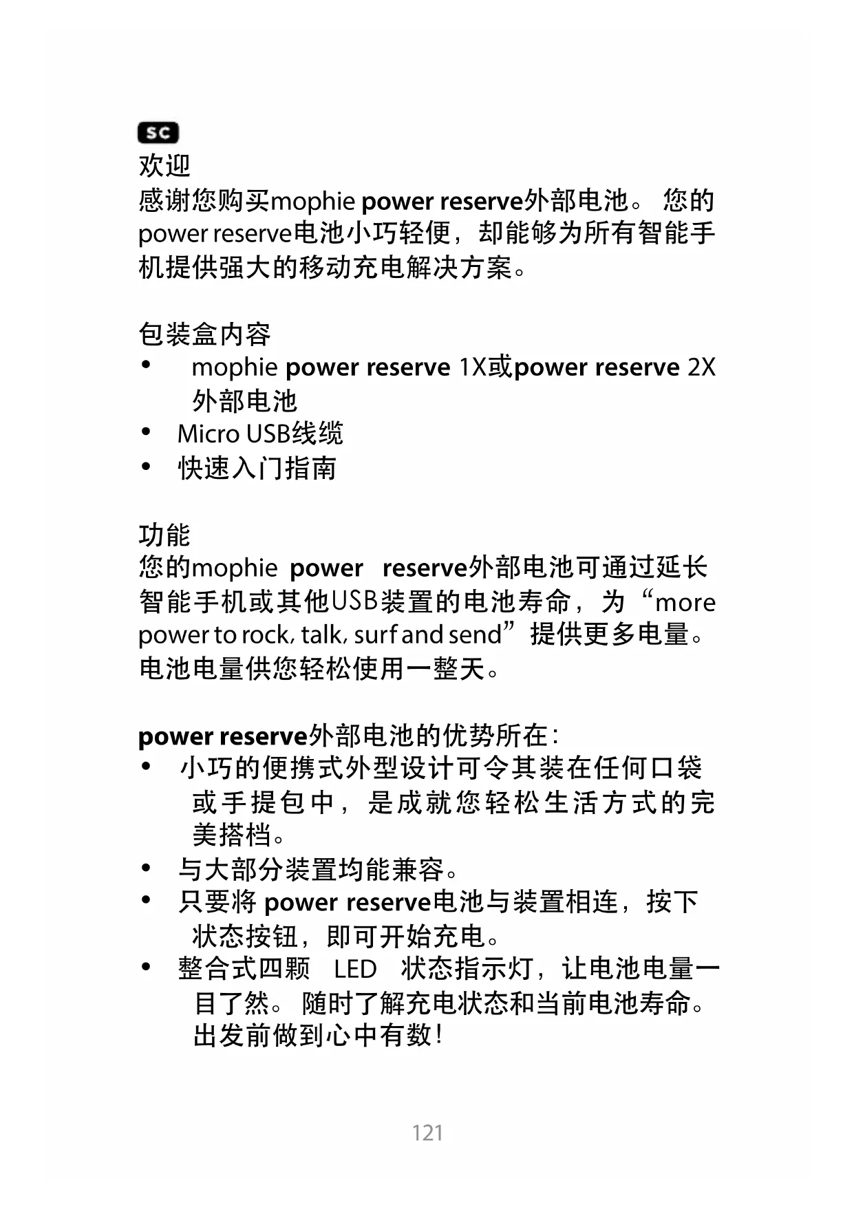 感谢您购买mophie power reserve外部电池。您的 power reserve电池小巧轻便,却能够为所有智能手 机提供强大的移动充电解决方案。