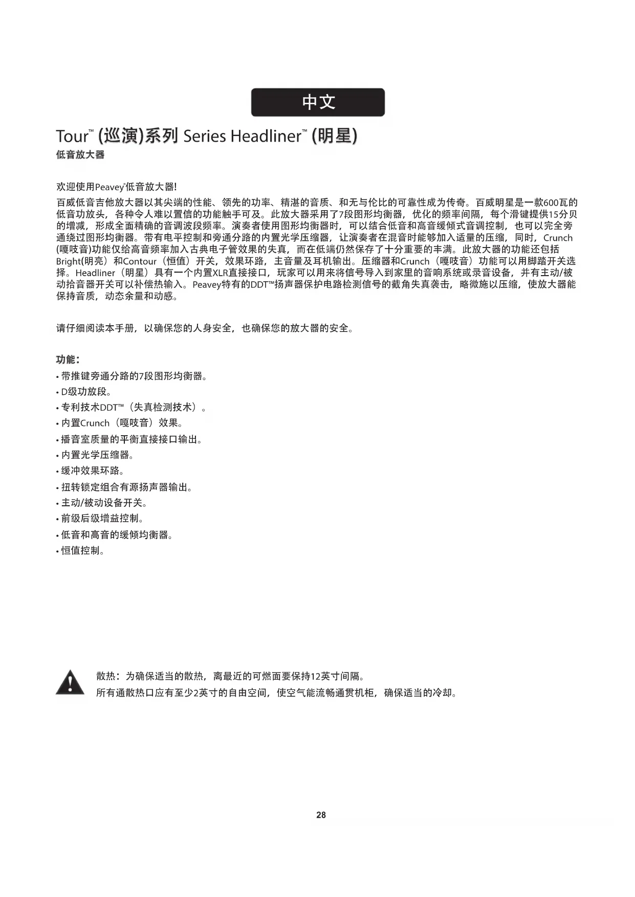 Headliner - 低音放大器 PEAVEY - 免费用户手册