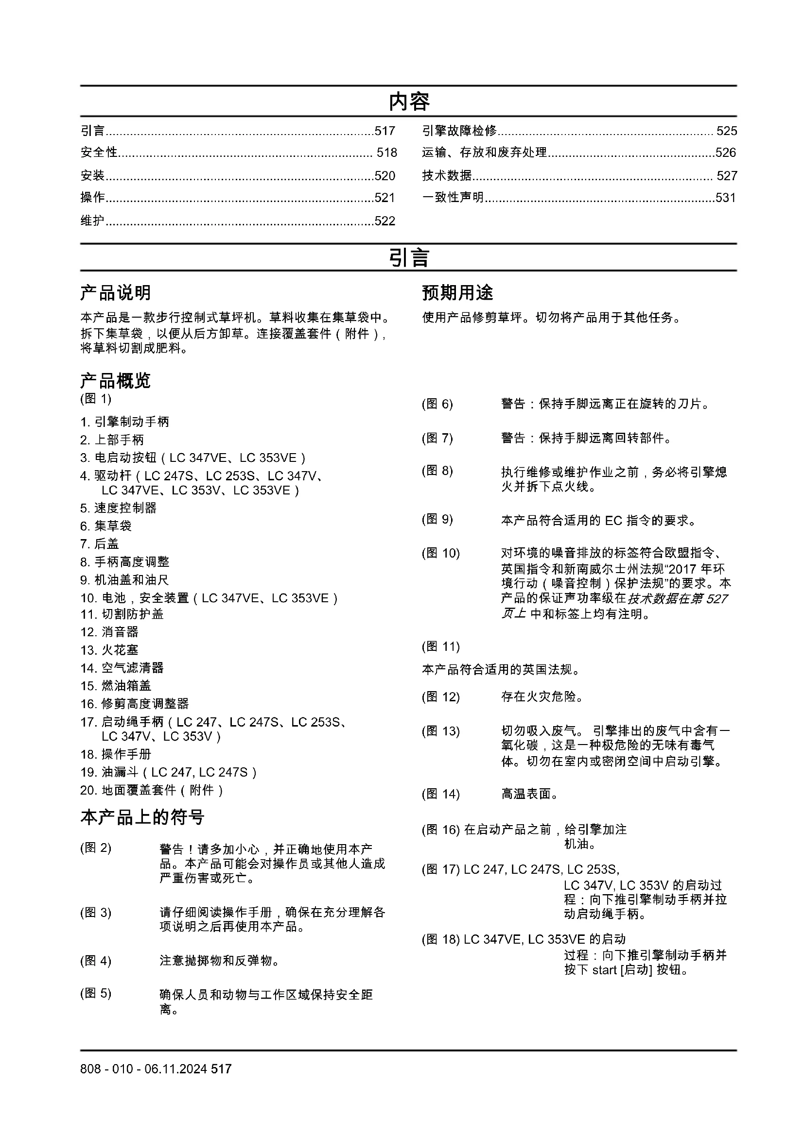 808 - 010 - 06.11.2024• 切勿在封闭空间或易燃物品附近启动引擎。引擎排出