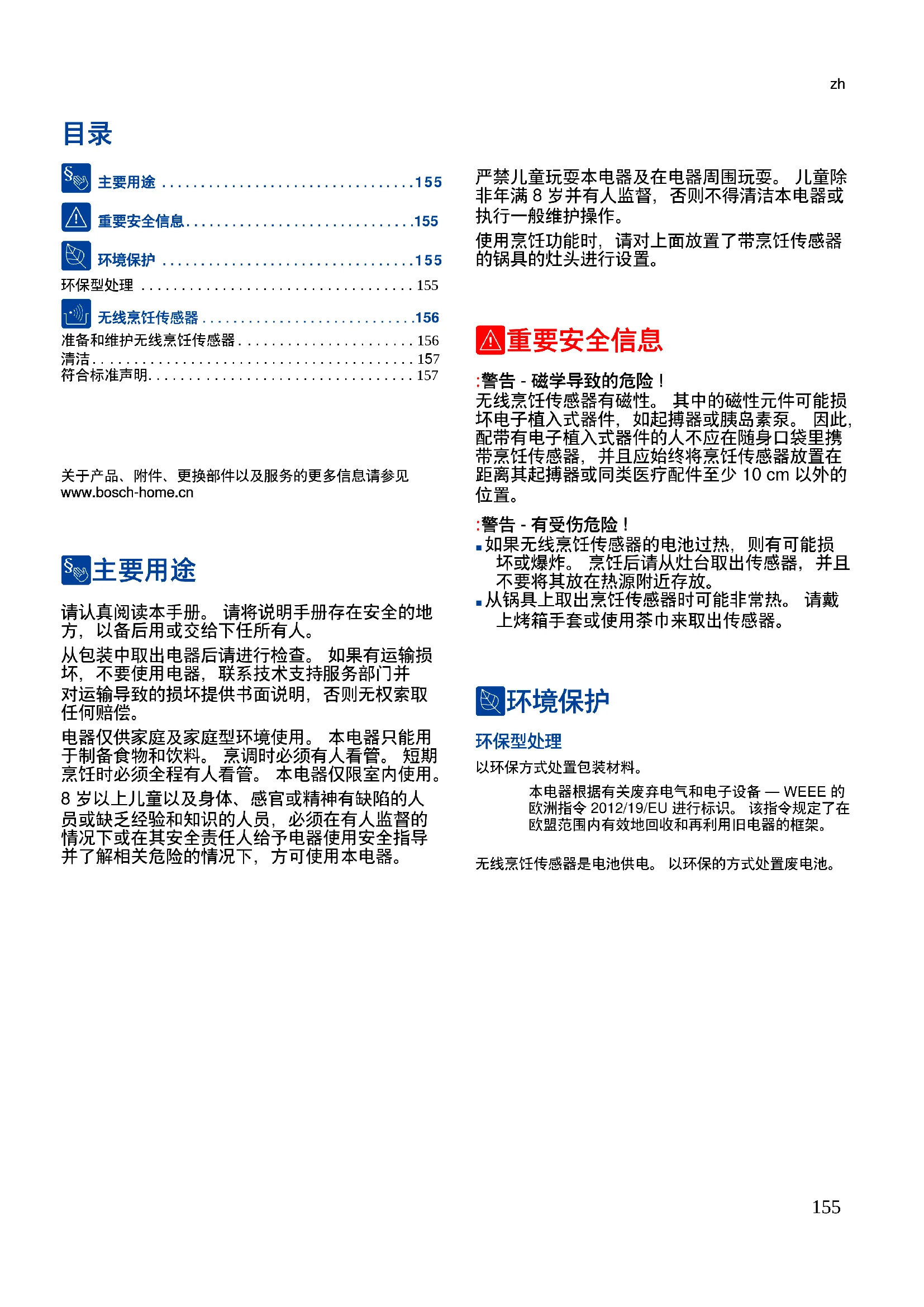 Produktinfo 关于产品、附件、更换部件以及服务的更多信息请参见 www.bosch-home.cn 8主要用途
