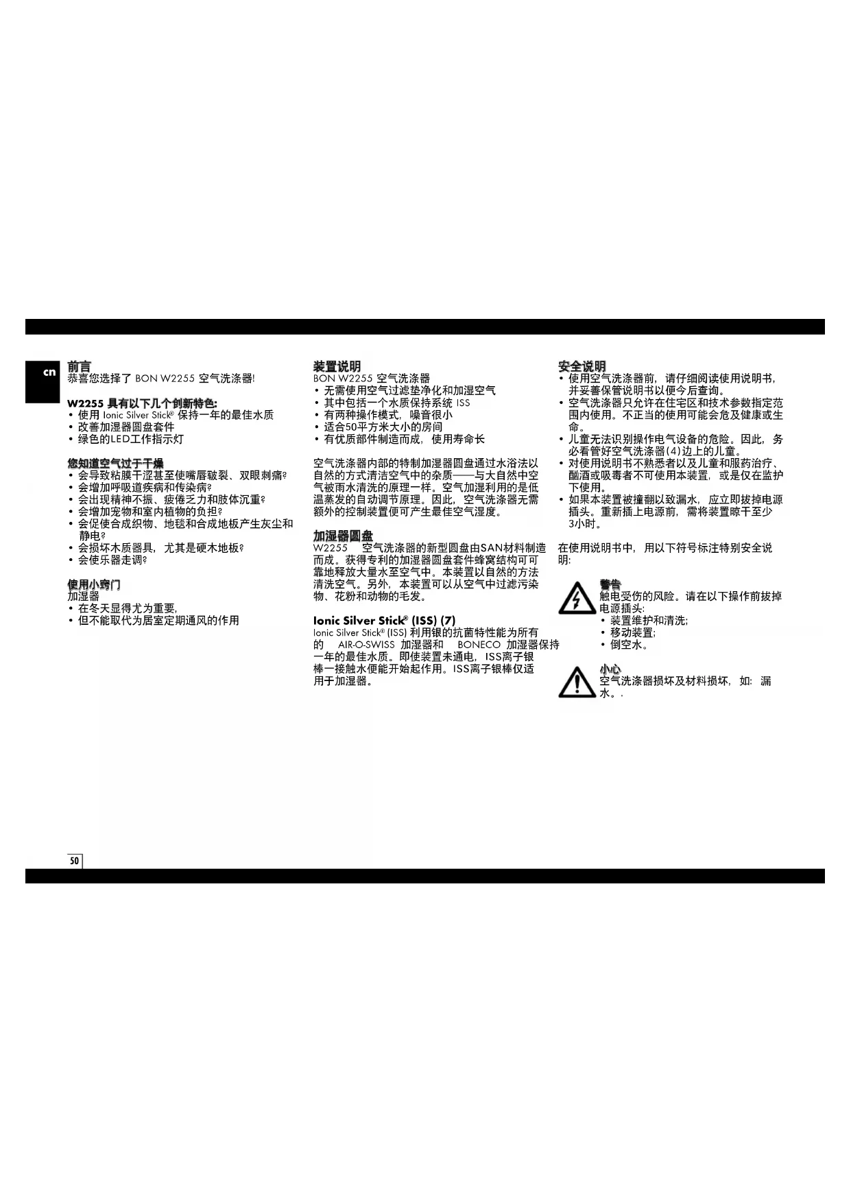 用户手册 W2255 BONECO